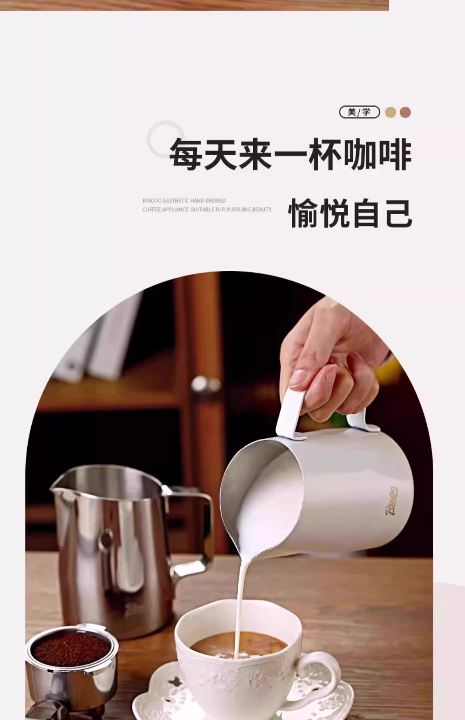 - Bình tạo bọt sữa bằng thép không gỉ Bincoo, có vòi nghiêng, chuyên dụng cho cà phê espresso.