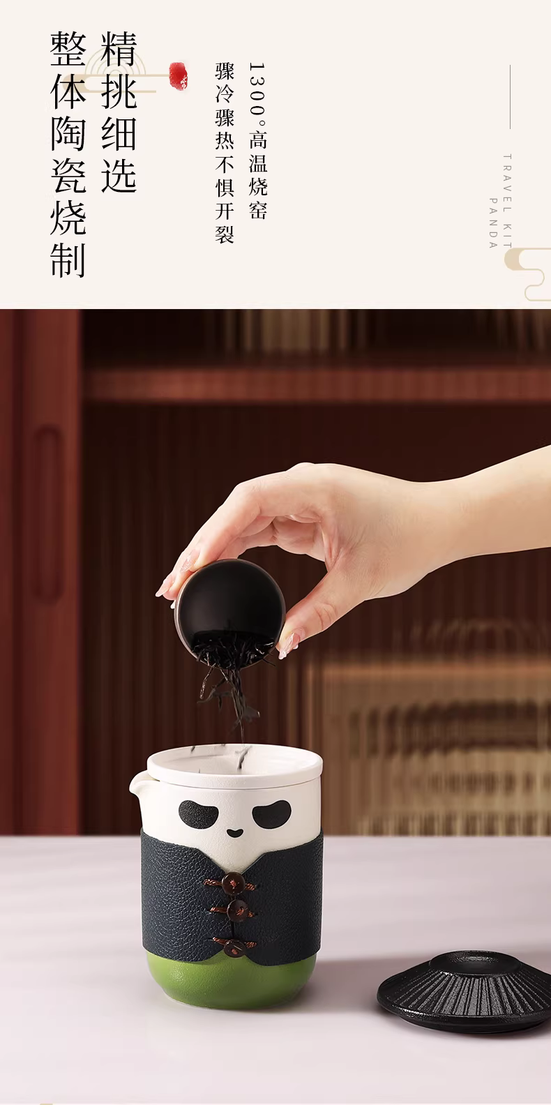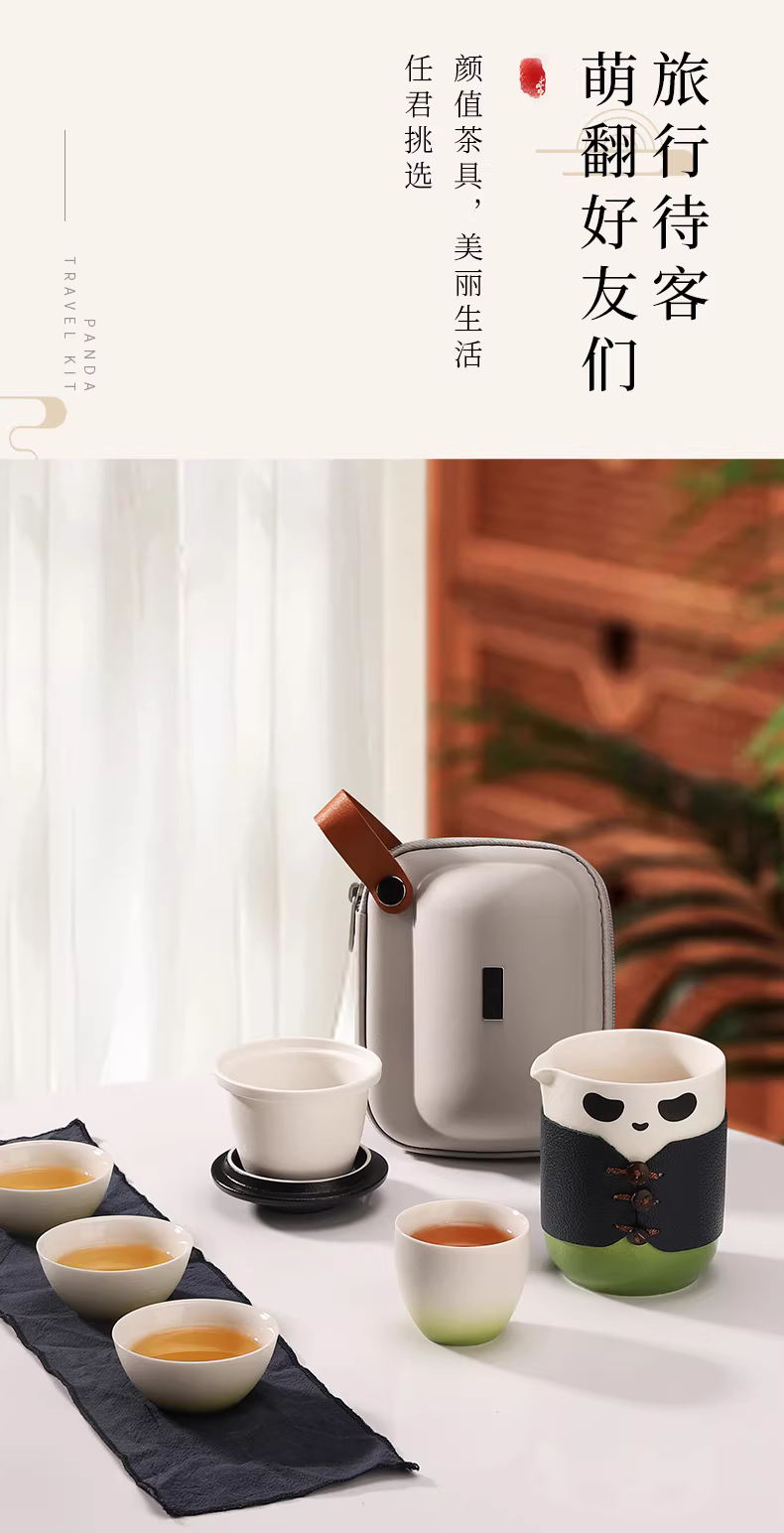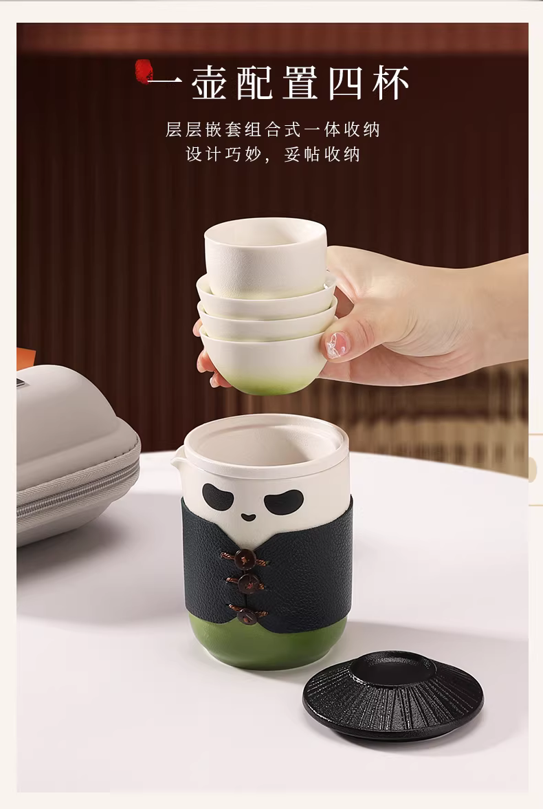 Bộ ấm chén du lịch Mongdio Panda, bộ ấm chén tách trà, cốc tách nước trà, đồ dùng văn phòng, cốc gốm, bộ ấm chén trà