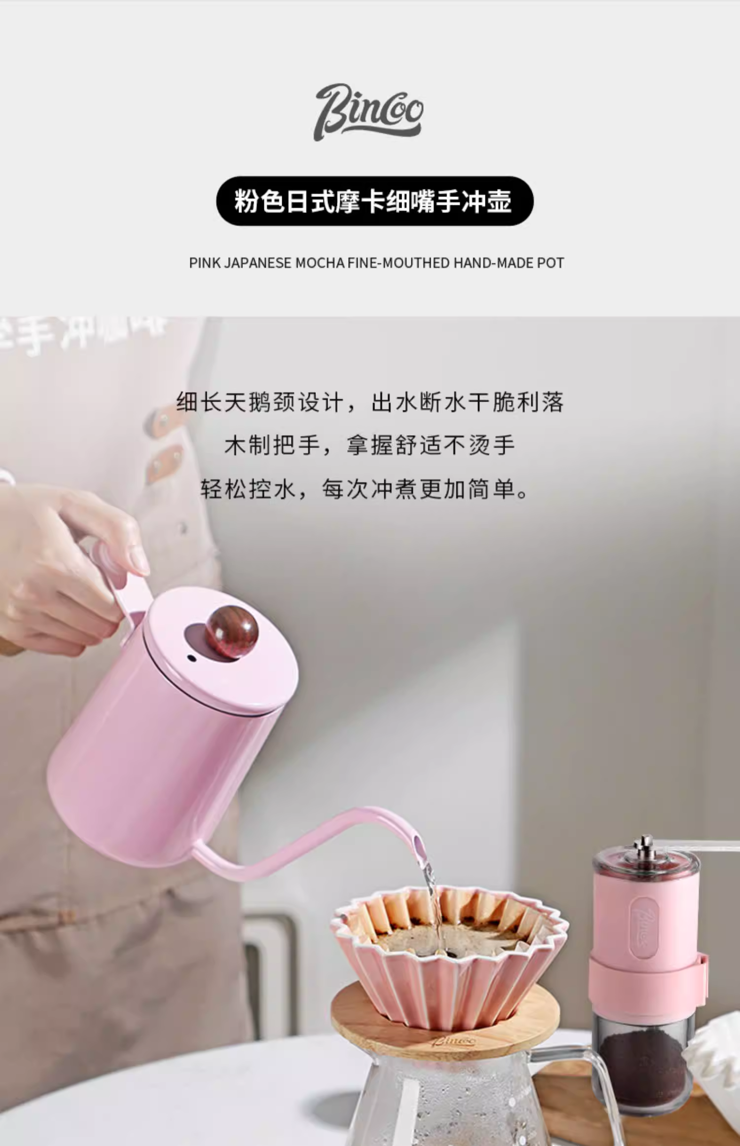 Bộ ấm pha cà phê Bincoo màu hồng, bộ dụng cụ pha cà phê, bộ lọc, ấm chia cà phê, bộ đầy đủ, cà phê xay tay, bộ đầy đủ dùng tại nhà