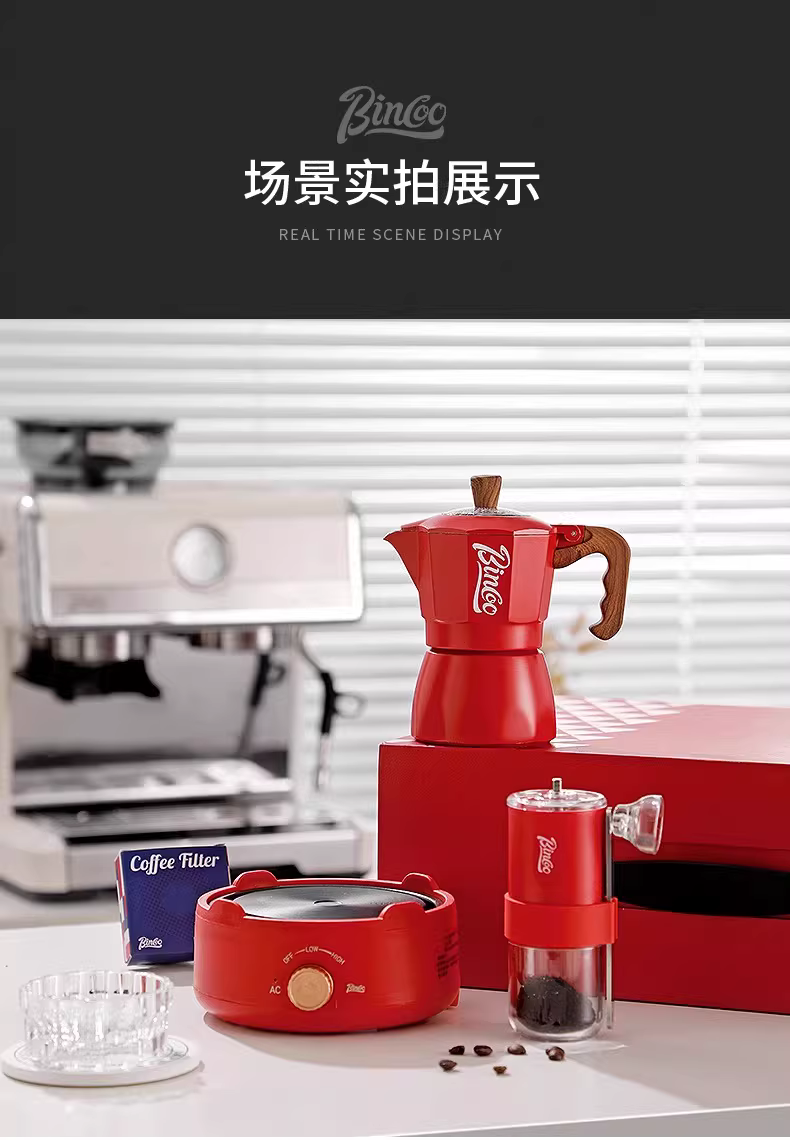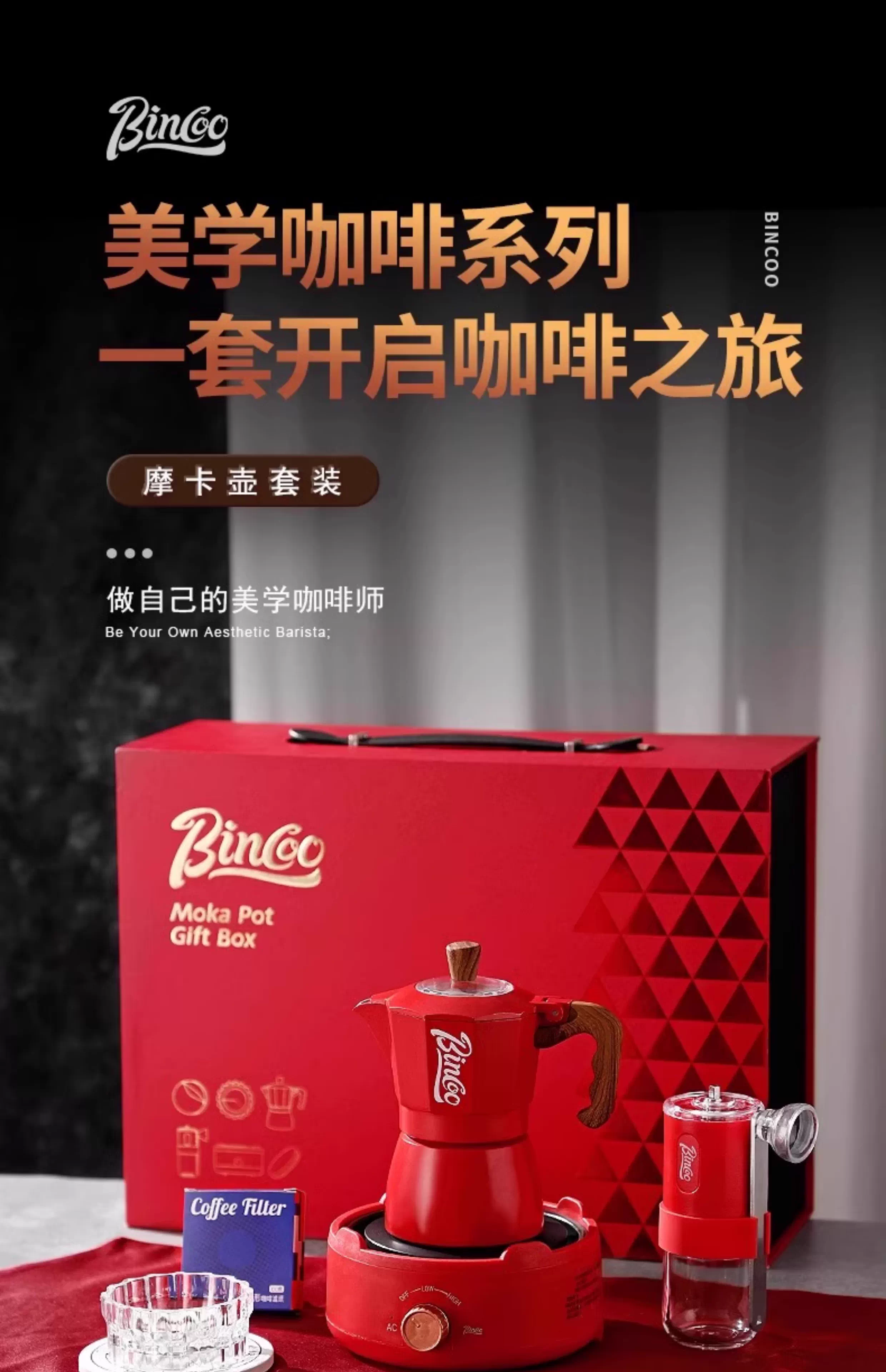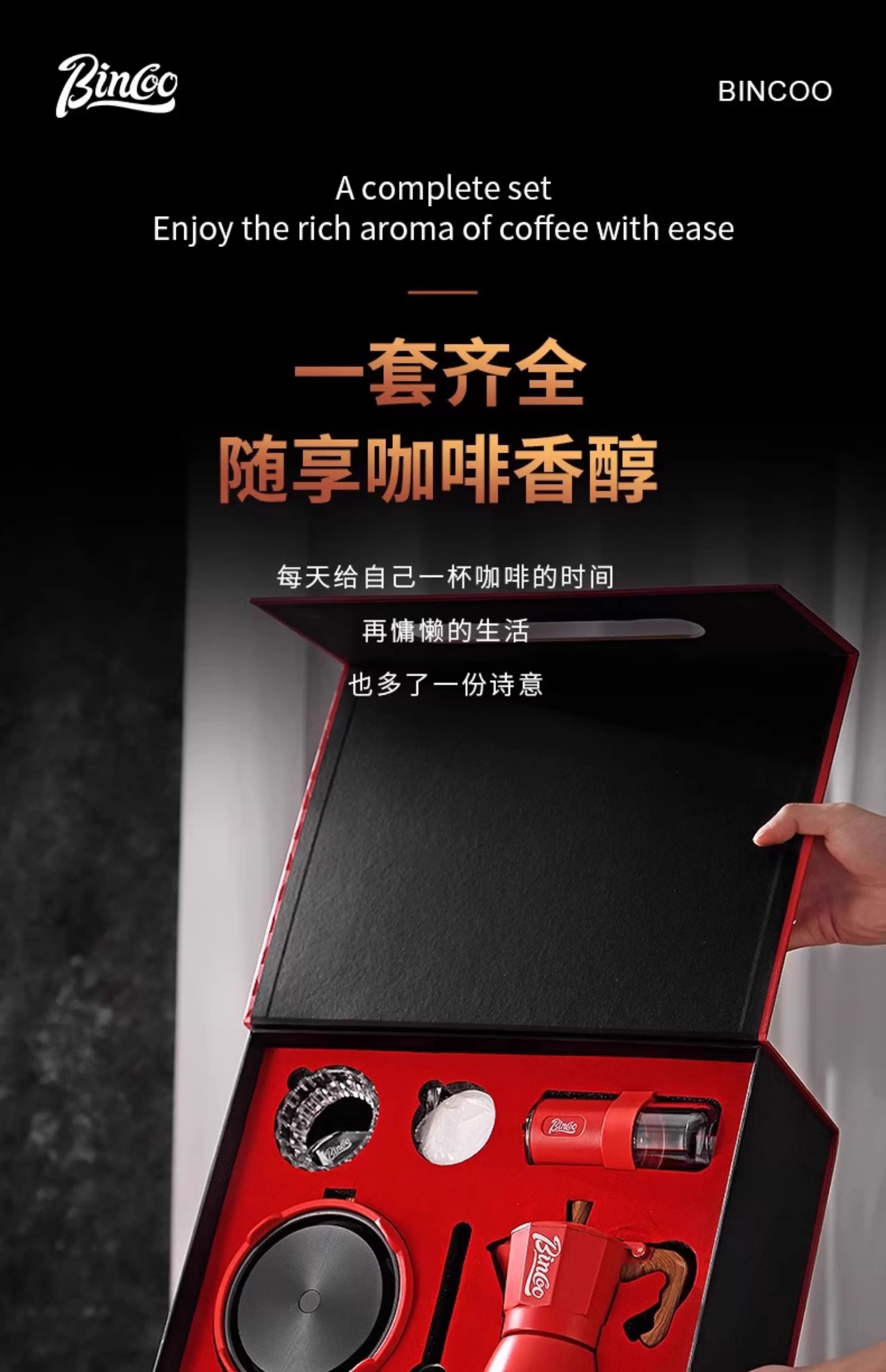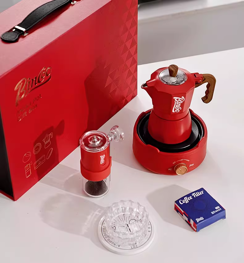 - Bộ ấm pha cà phê Bincoo Moka pot di động, hộp quà tặng, dùng để pha cà phê espresso, cà phê pha thủ công, sử dụng tại nhà, quà tặng sinh nhật
