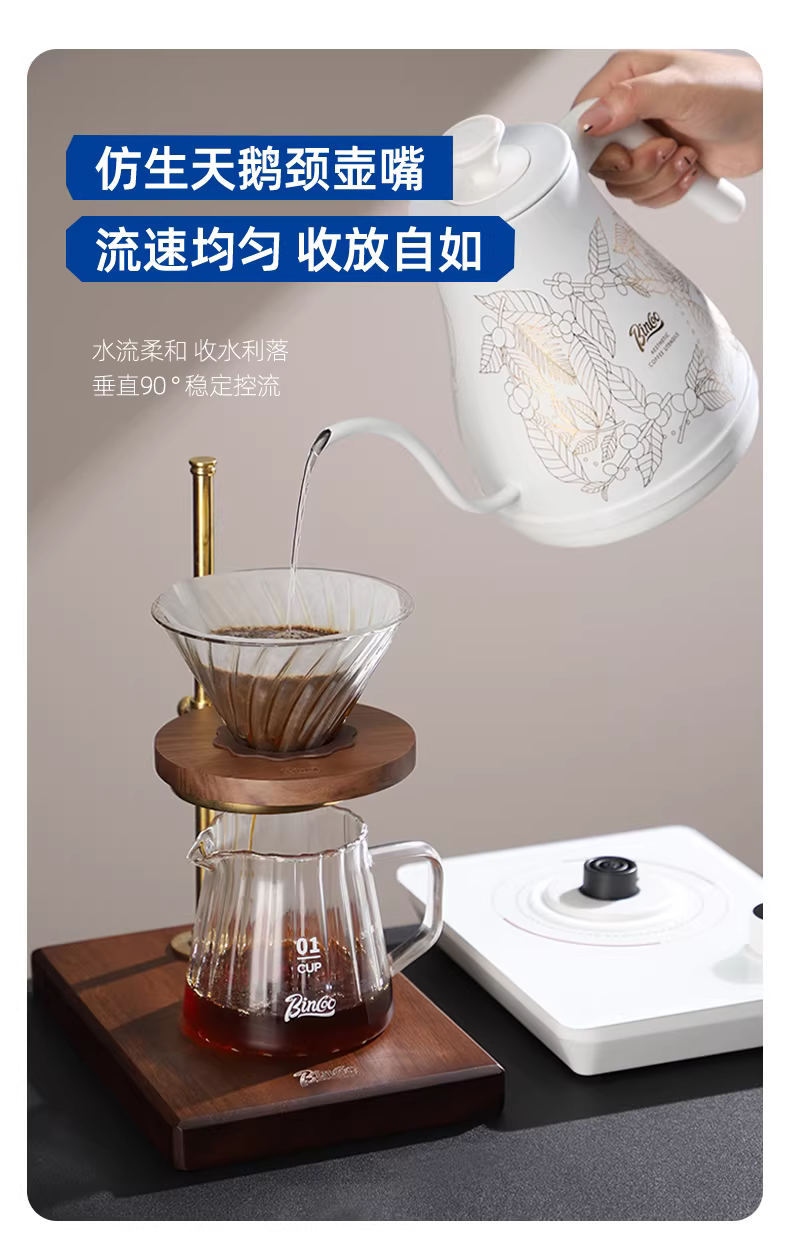 Bộ ấm pha cà phê có điều khiển nhiệt độ Bincoo, vòi nhỏ, có thể điều chỉnh nhiệt độ, nhiệt độ không đổi, ấm đặc biệt để pha trà, ấm điện.