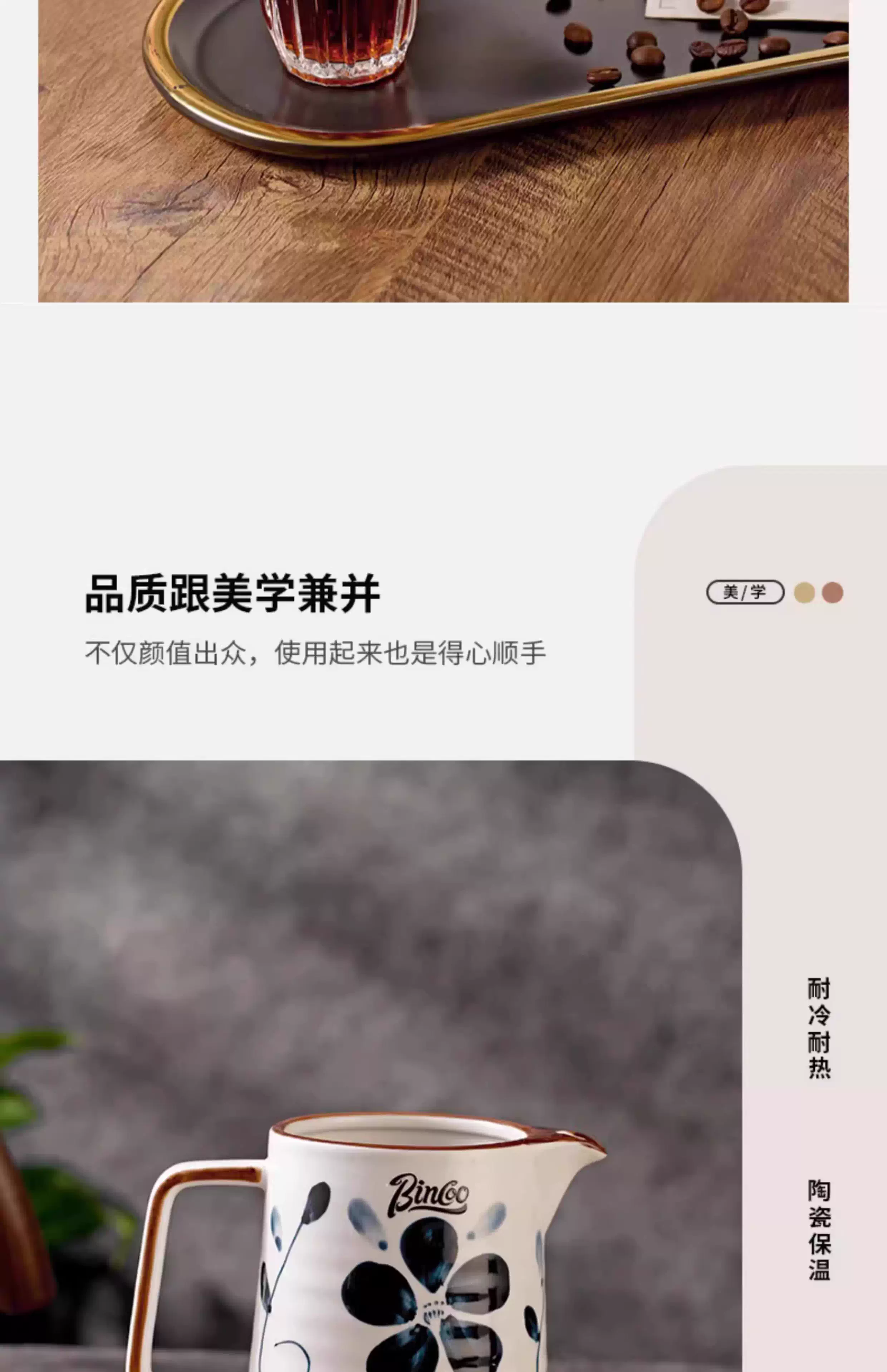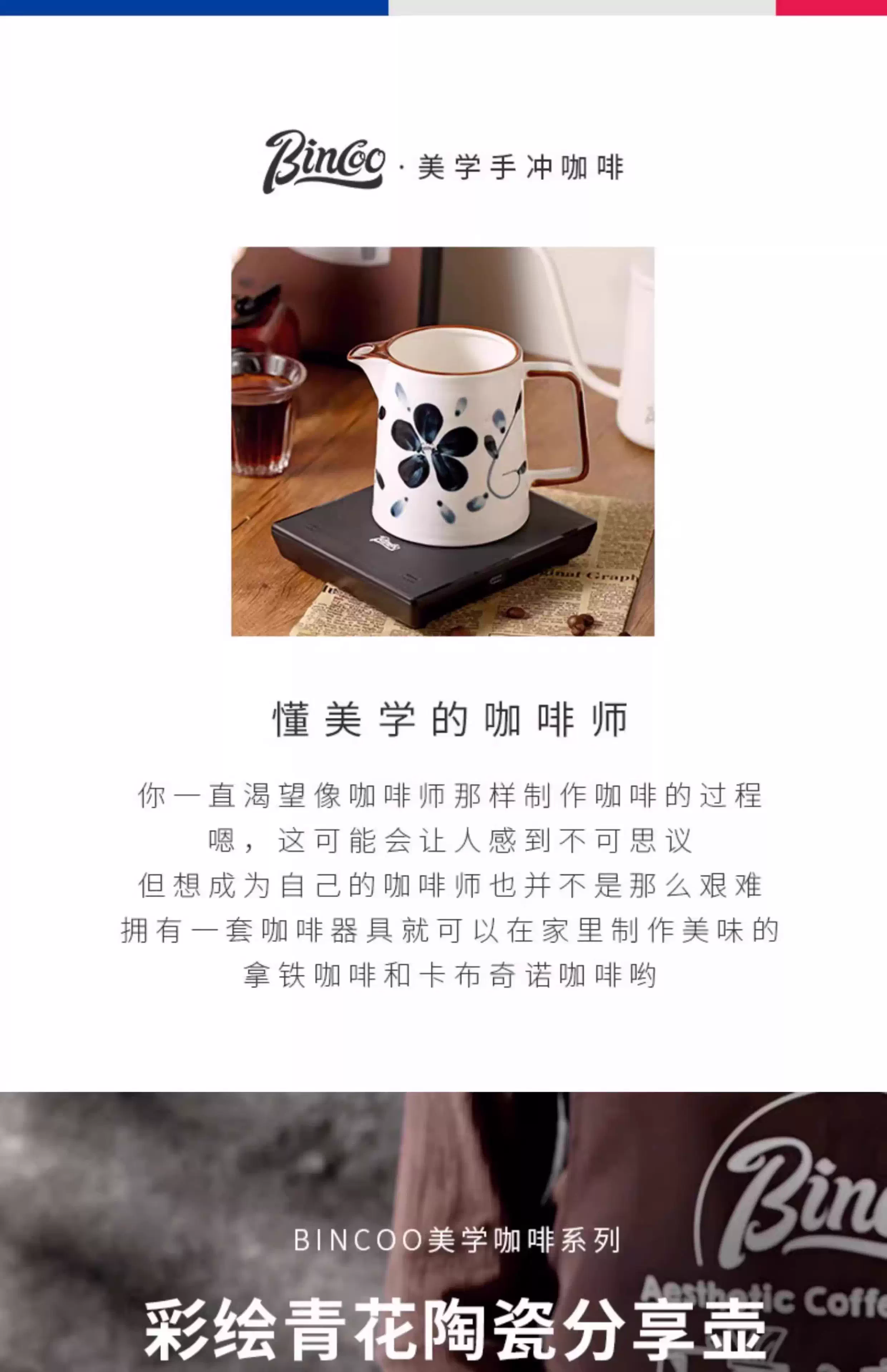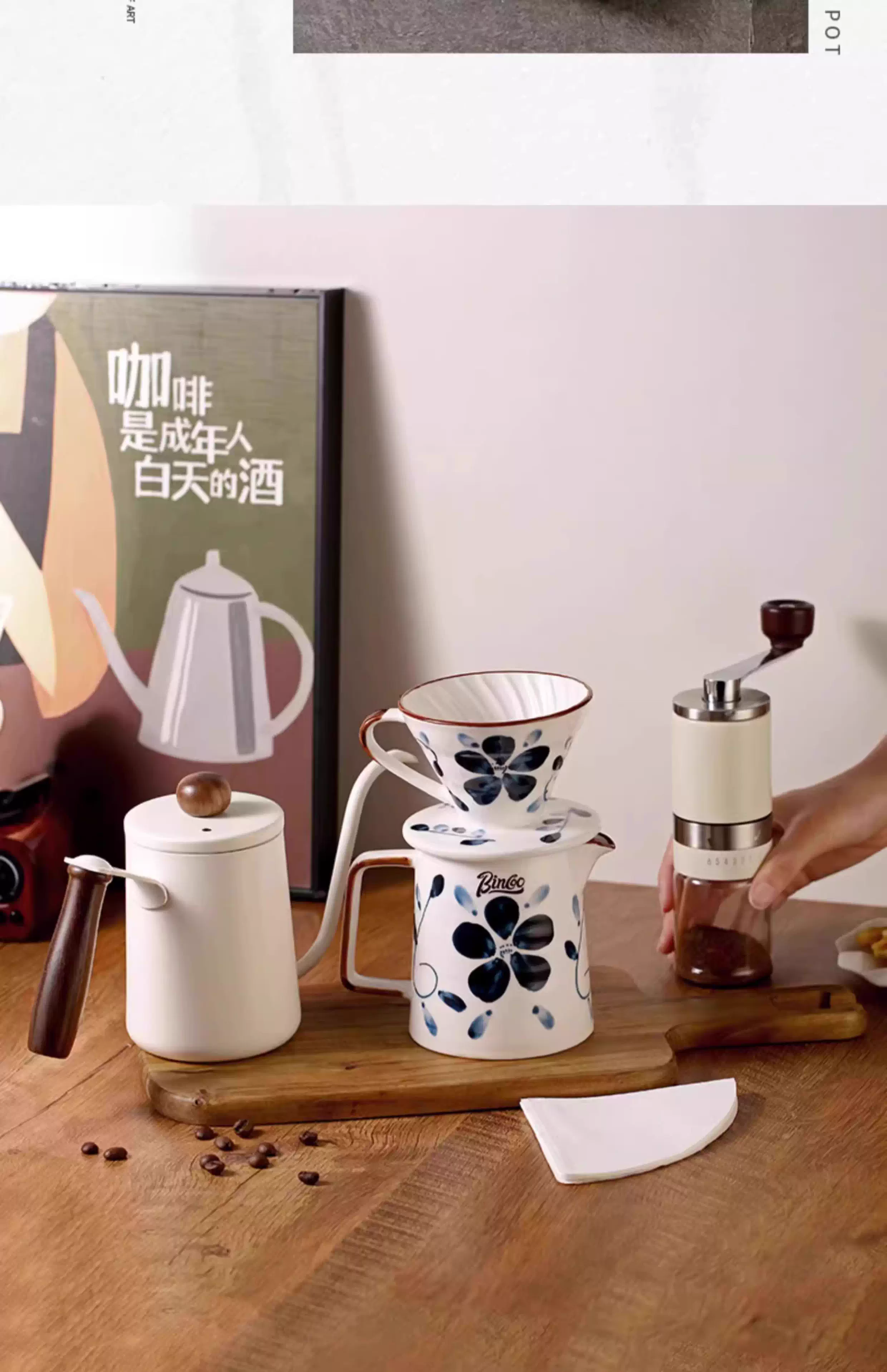 Bộ ấm pha cà phê sứ xanh trắng Bincoo vẽ tay v60, bộ lọc cà phê gốm sứ sáng tạo kiểu Nhật dùng trong nhà