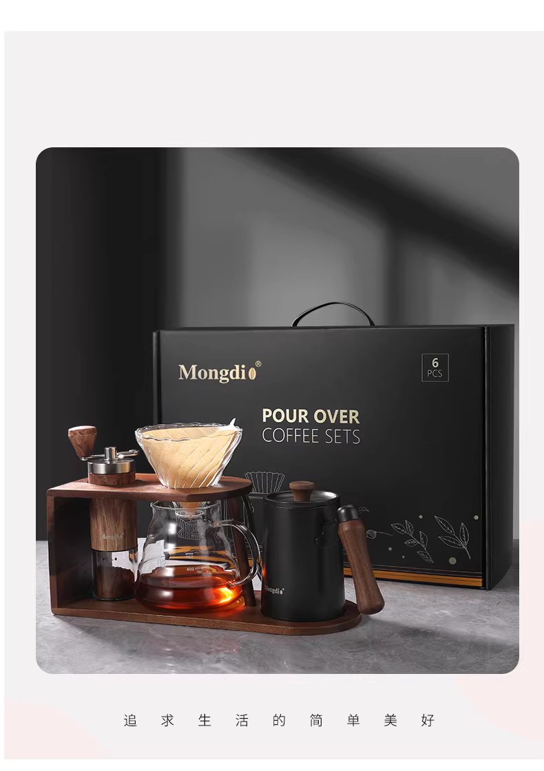 Bộ ấm pha cà phê thủ công Mongdio hộp quà tặng máy xay cà phê cầm tay máy pha cà phê quay tay giá đựng cà phê pha thủ công trọn bộ