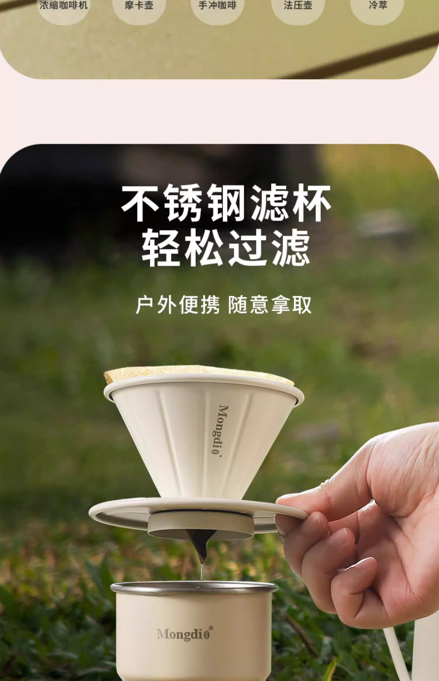 - Bộ ấm pha cà phê thủ công Mongdio, túi xách di động, máy xay cà phê cầm tay, dụng cụ pha cà phê thủ công ngoài trời, cắm trại