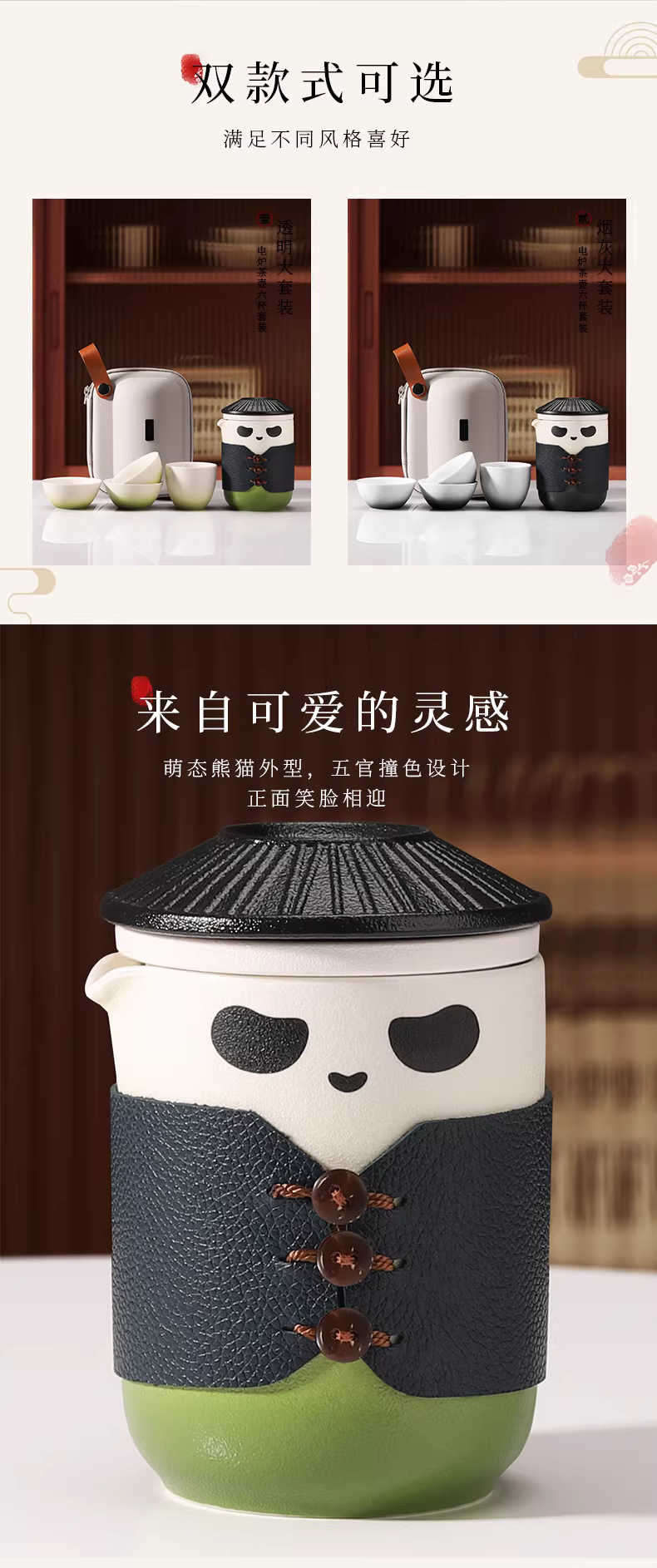 - Bộ ấm trà Mongdio Panda Bộ du lịch di động Cốc trà nhanh Cốc trà tách nước Cốc gốm Cốc pha trà