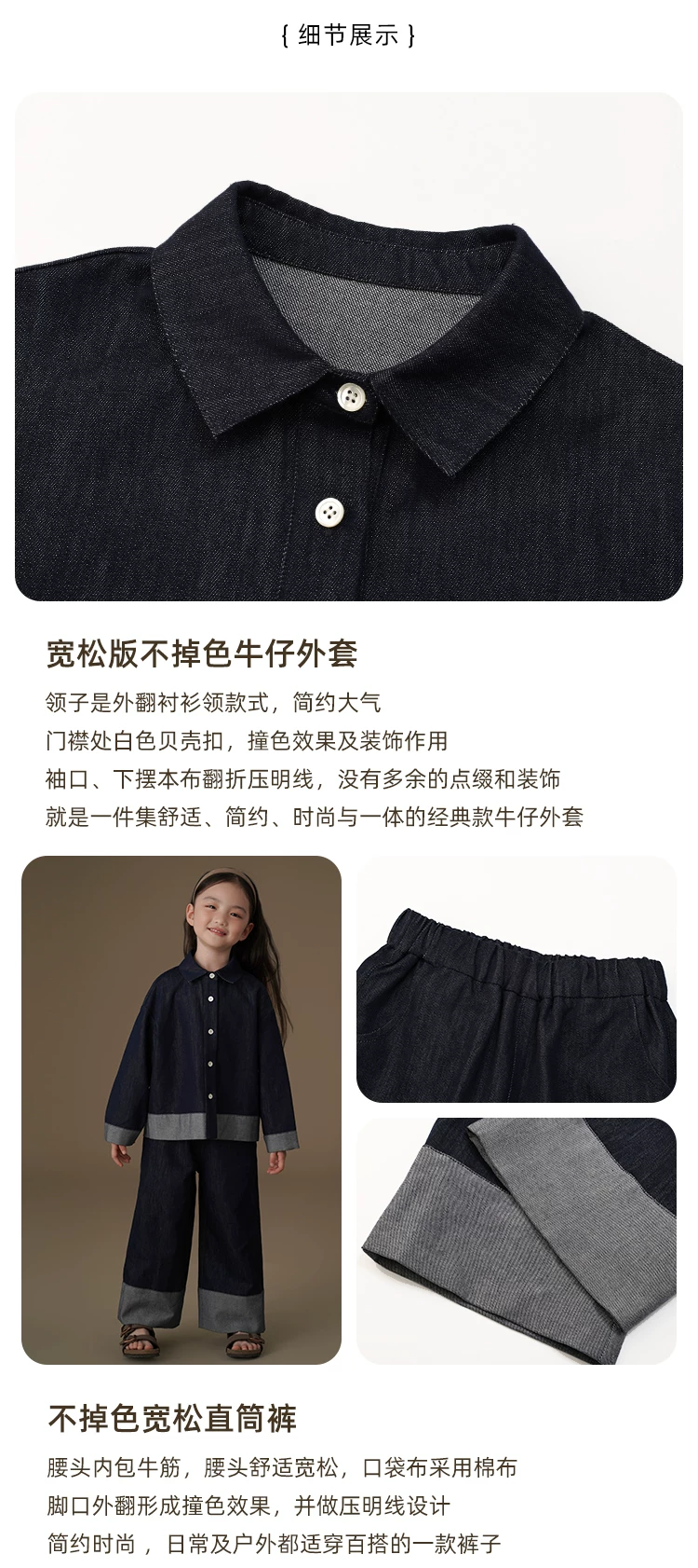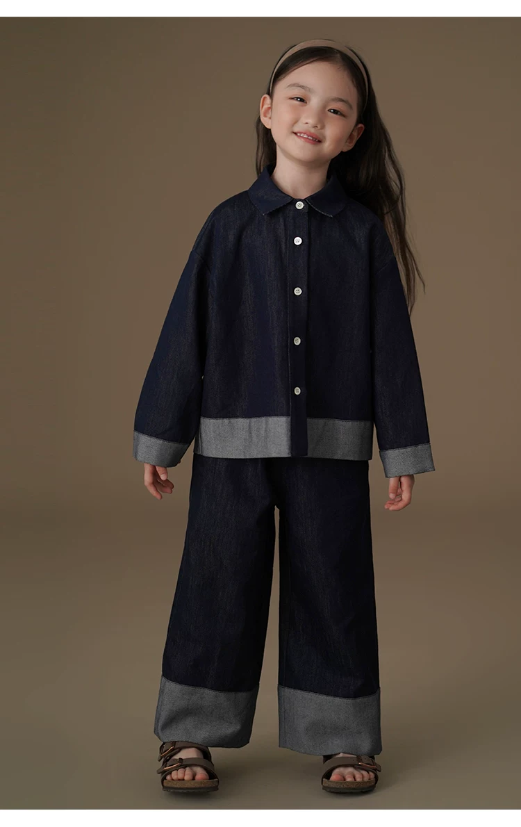 - Bộ áo khoác denim và quần denim rộng rãi cho bé trai và bé gái, bộ sưu tập mới mùa xuân thu.