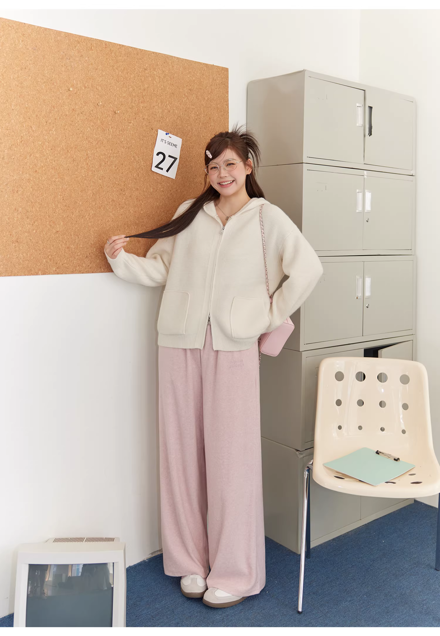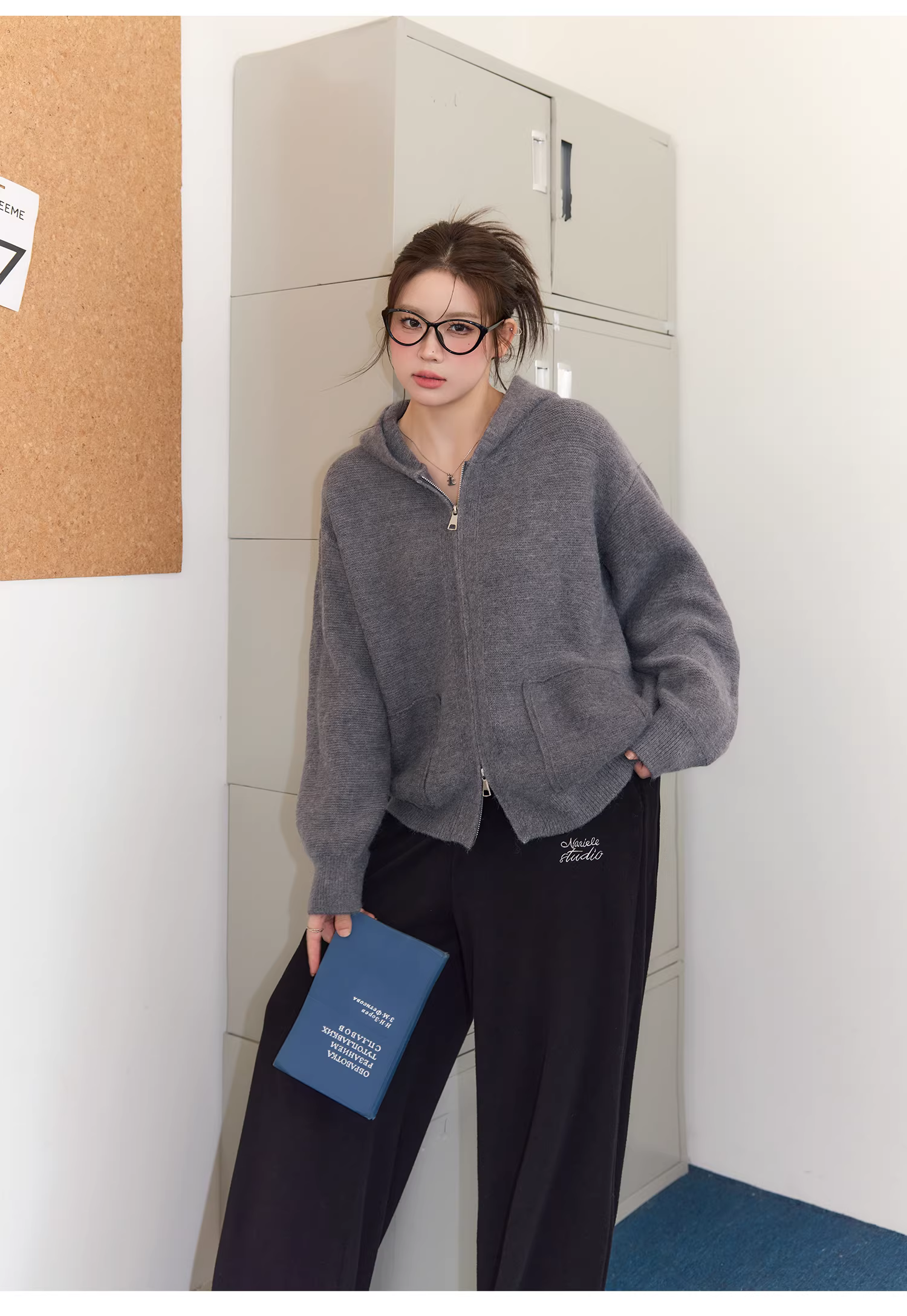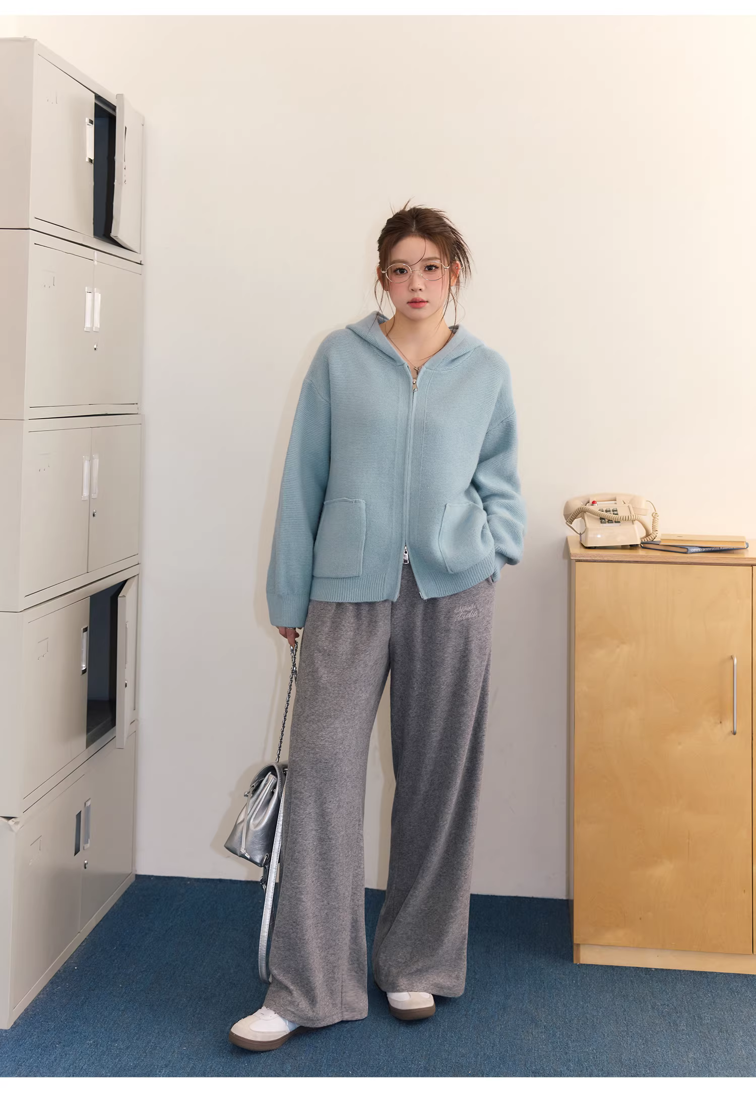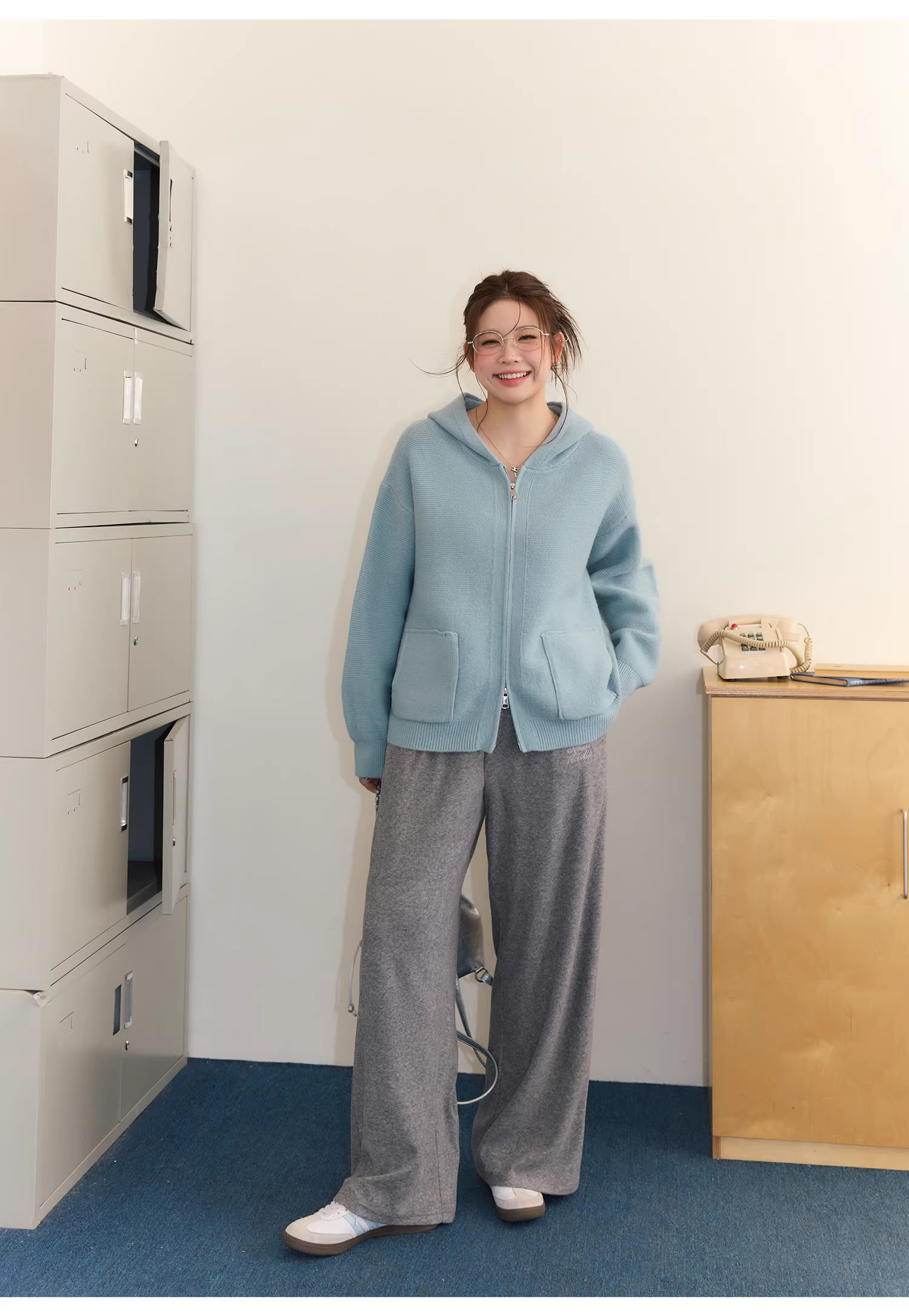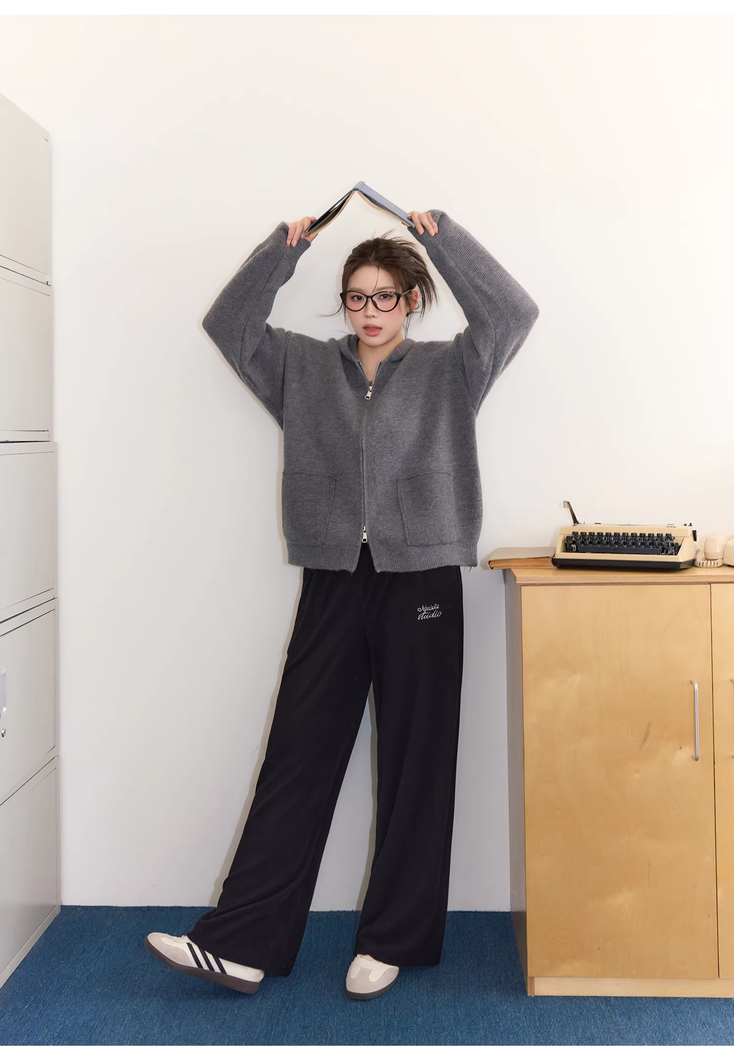 - Bộ áo len nữ cỡ lớn cho mùa thu đông, che mỡ bụng, phong cách lười biếng, quần cạp cao, quần giảm béo.