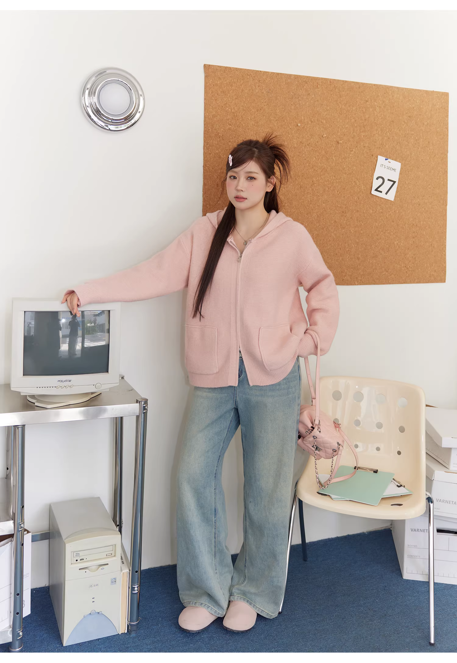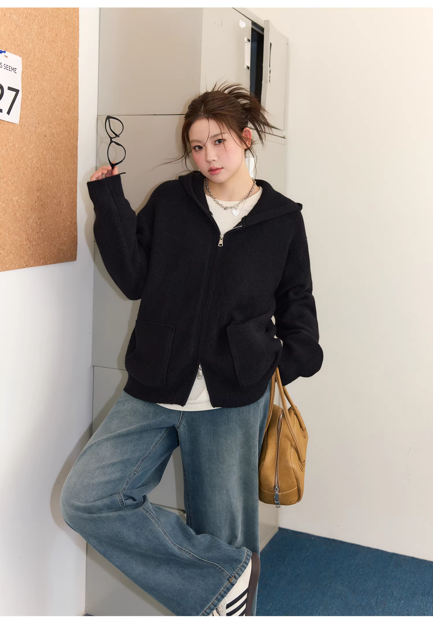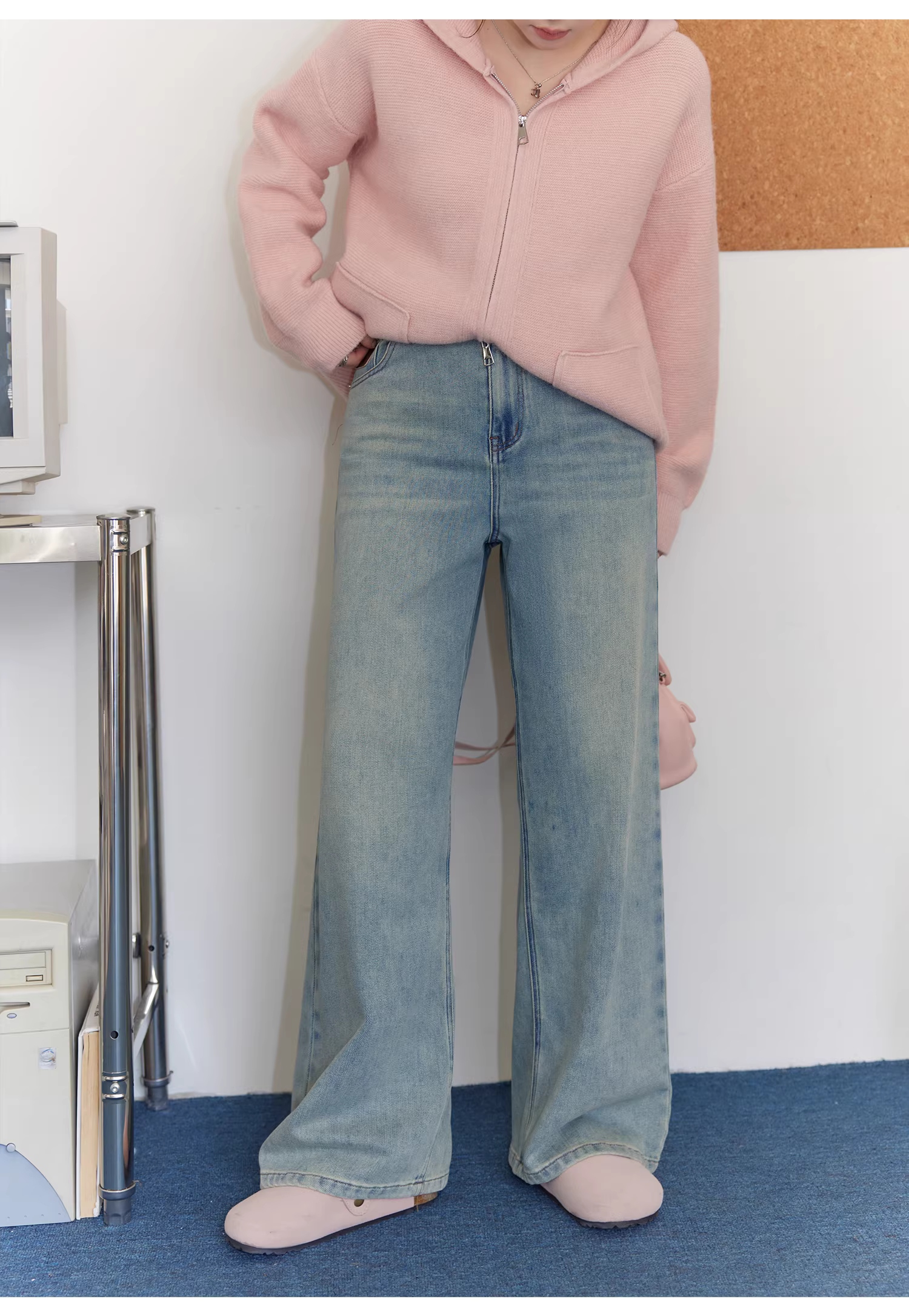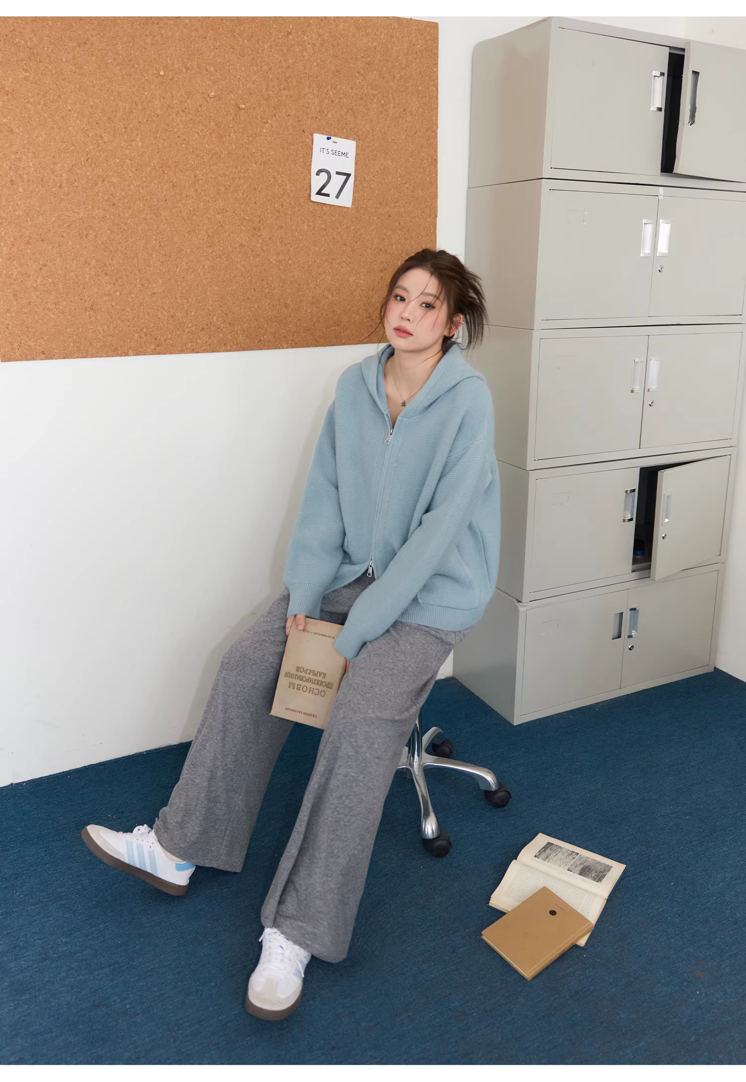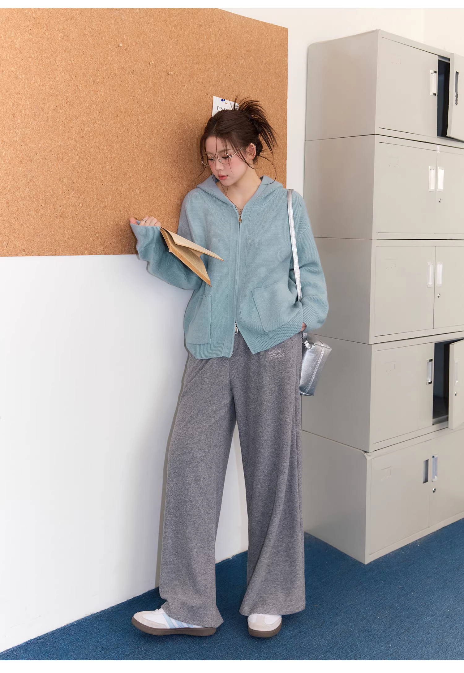 - Bộ áo len nữ cỡ lớn cho mùa thu đông, che mỡ bụng, phong cách lười biếng, quần cạp cao, quần giảm béo.