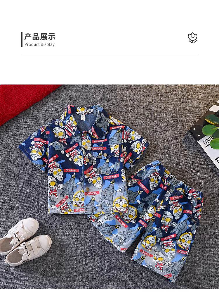 - Bộ áo sơ mi denim cho bé trai, trang phục mùa hè thời trang trẻ em, thời trang đường phố mát mẻ cho bé Quần áo Ultraman