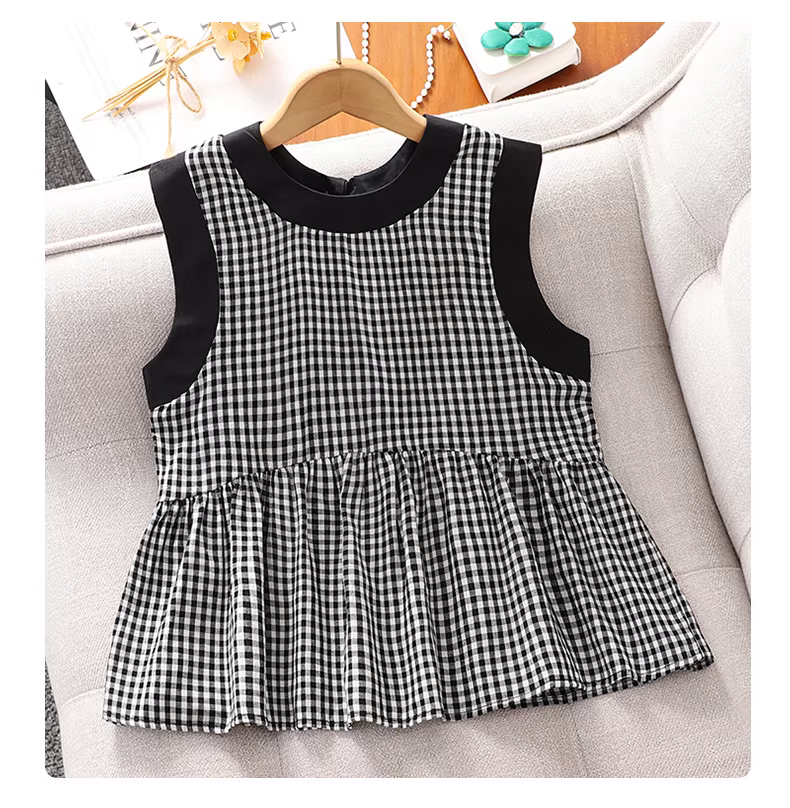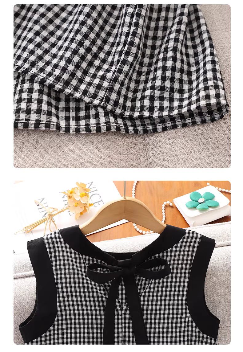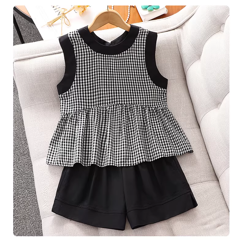 - Bộ áo sơ mi không tay cho bé gái, phong cách mùa hè, sành điệu, bé gái lớn hơn, phong cách nhỏ nhắn thơm tho, trang phục mùa hè kẻ sọc, quần short bé gái bộ hai mảnh