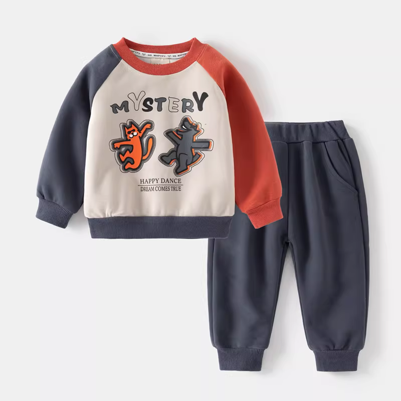- Bộ áo thun dày dặn cho bé trai mùa xuân đông 2025, áo len dài tay, bộ thể thao hai mảnh cho bé