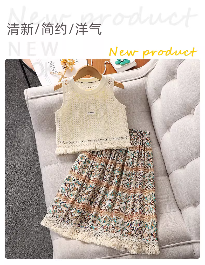 Bộ ba món váy yếm không tay dành cho bé gái, váy mùa hè sành điệu, áo vest thường ngày cho trẻ em, bộ đồ đi nghỉ hè cho bé gái