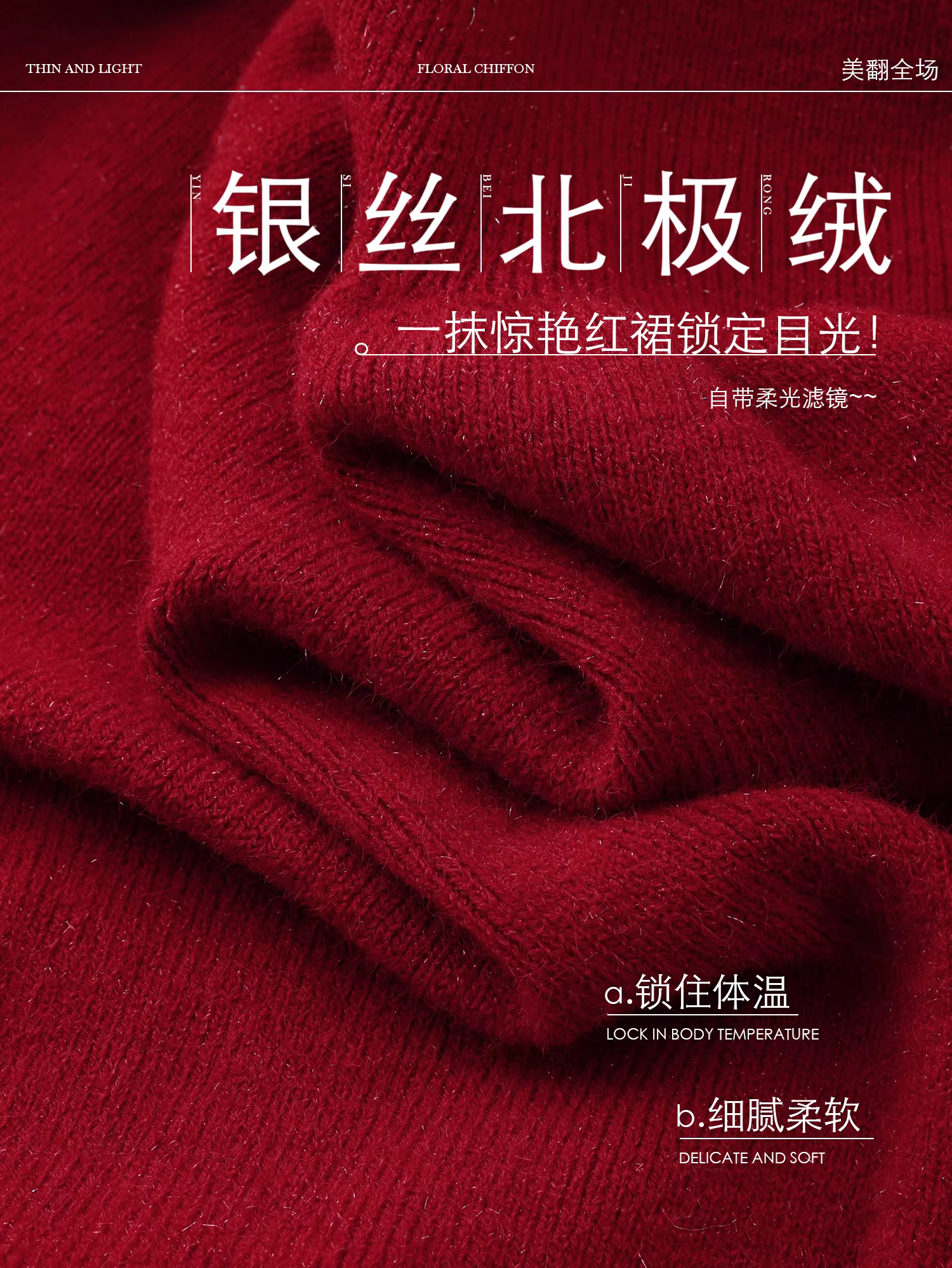 - Bộ đầm len đỏ dáng xòe, kiểu Hàn Quốc, tôn dáng và làm đẹp da, dành cho người lớn, size lớn.