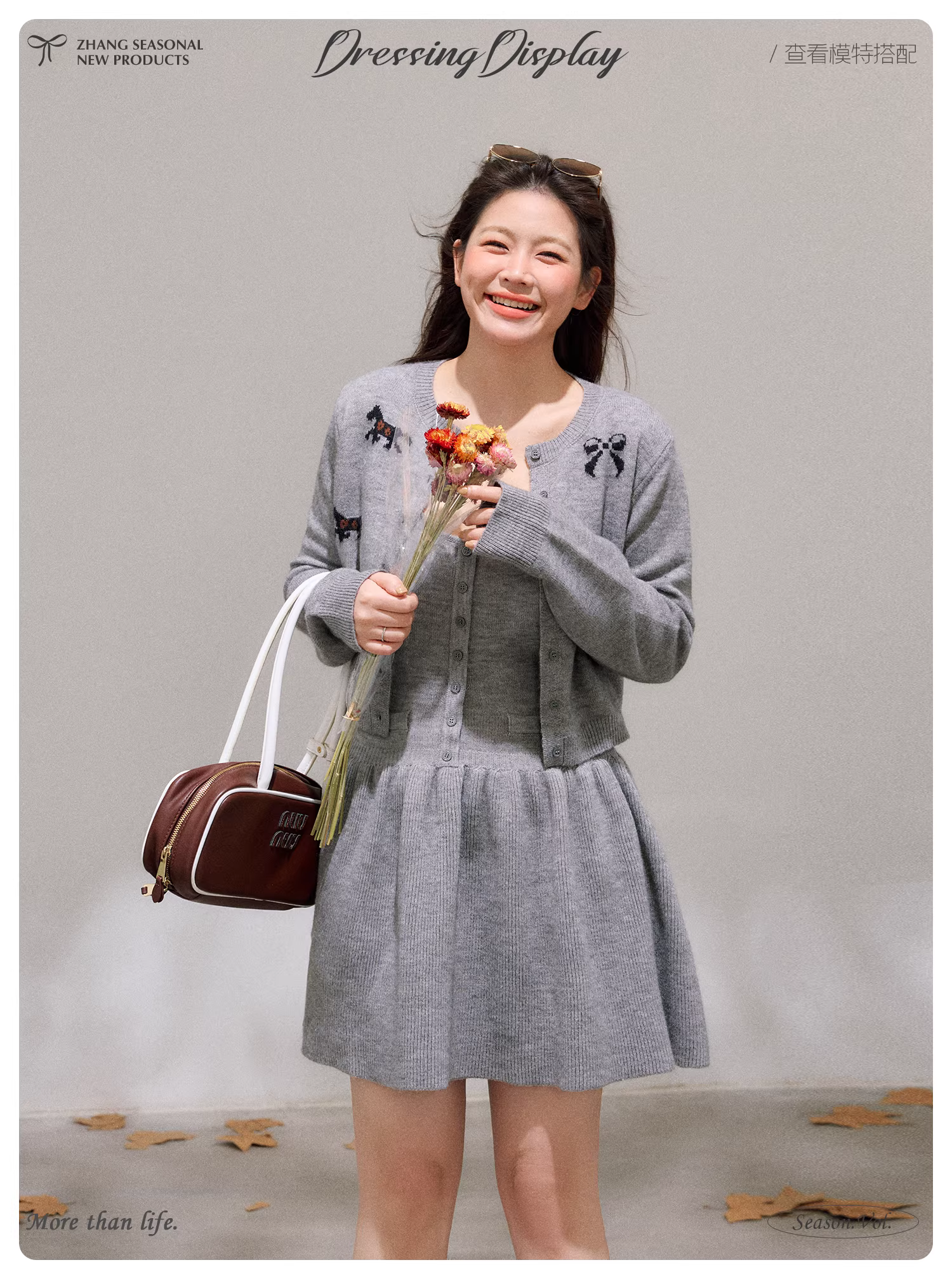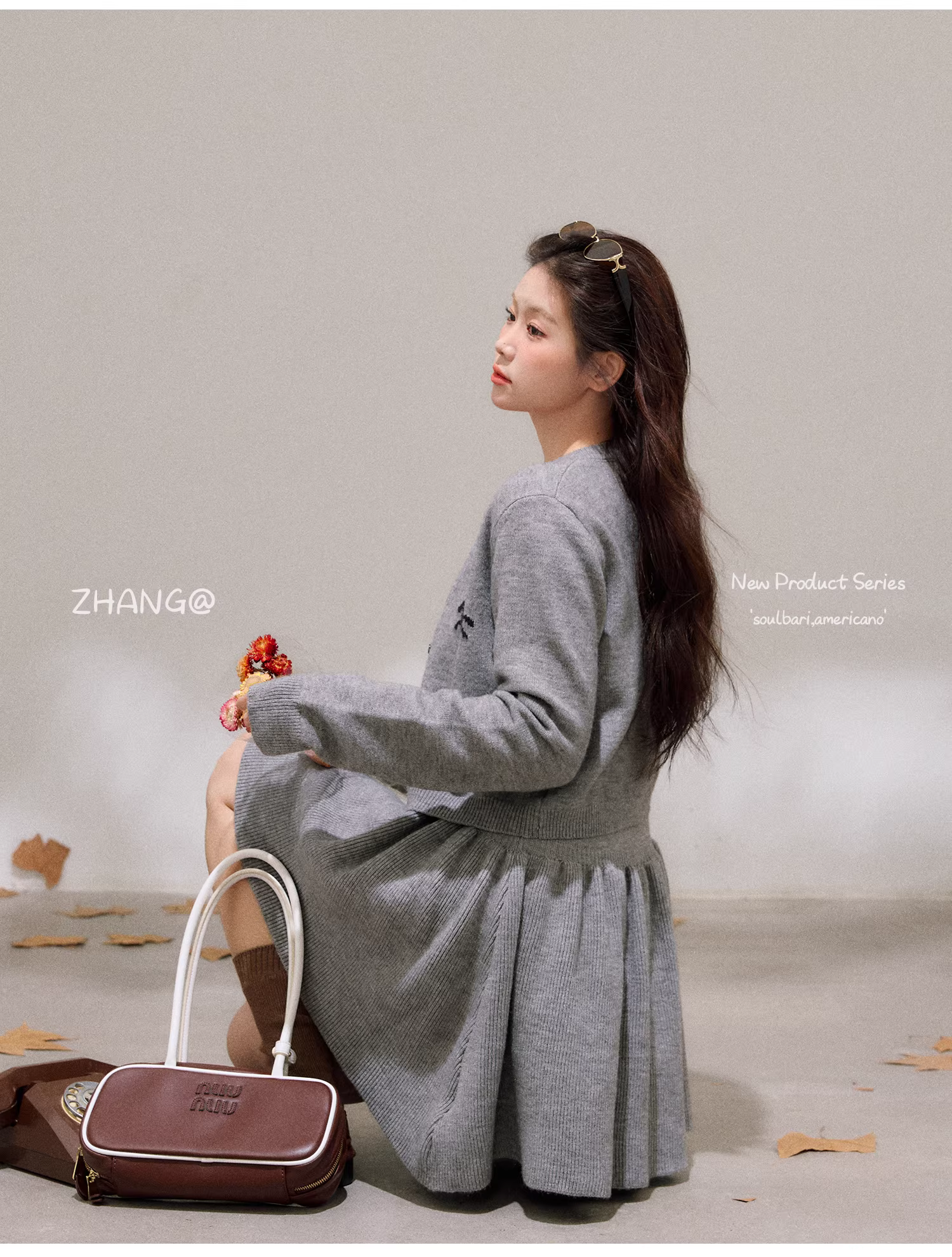 - Bộ đầm liền thân dệt kim màu xám nhạt kiểu Pháp, cổ halter, dáng ôm, mùa đông, dành cho phụ nữ cỡ lớn.