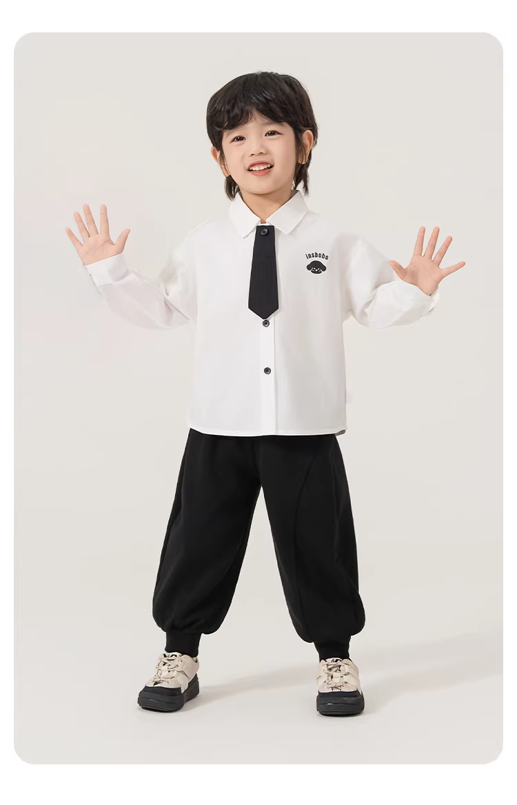 - Bộ đồ bé trai INSbobo xuân thu 2025, áo sơ mi hai mảnh, quần áo trẻ em, trang phục thời thượng đầu thu