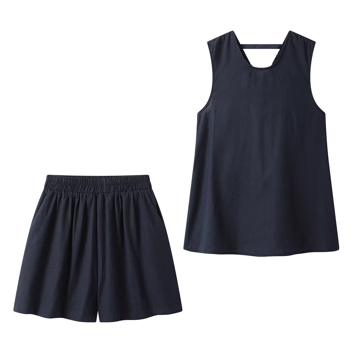 - Bộ đồ hai mảnh gồm áo không tay hở lưng và quần short dành cho nữ, phong cách mùa hè mới, bộ trang phục sành điệu và trẻ trung.