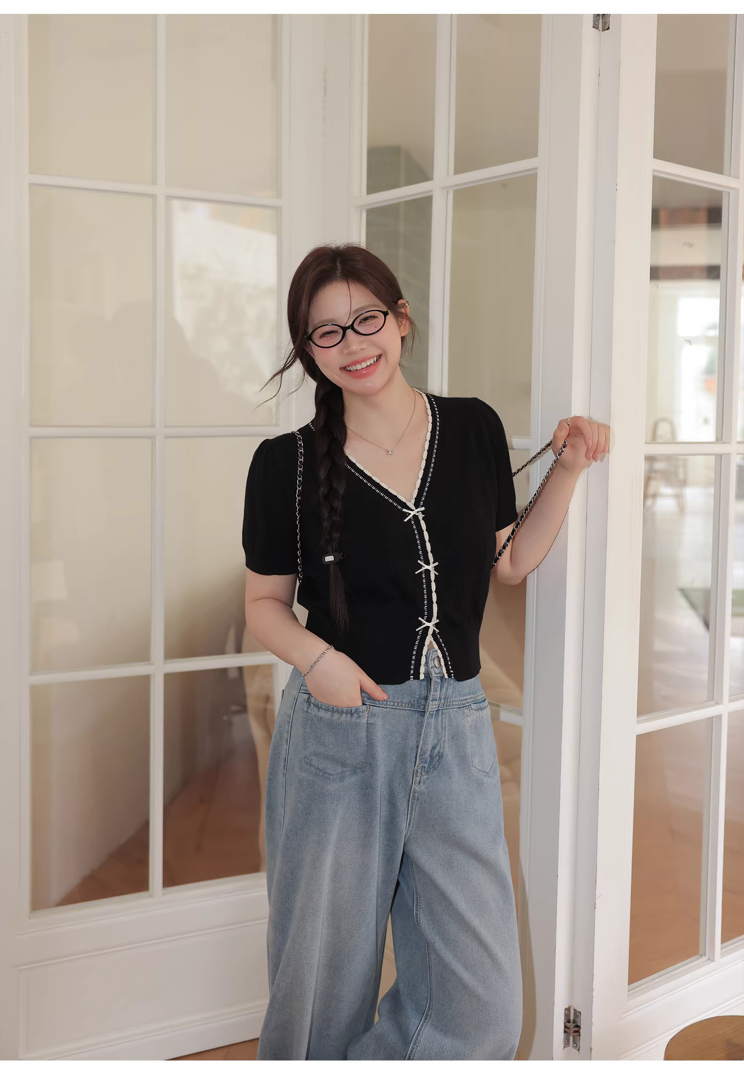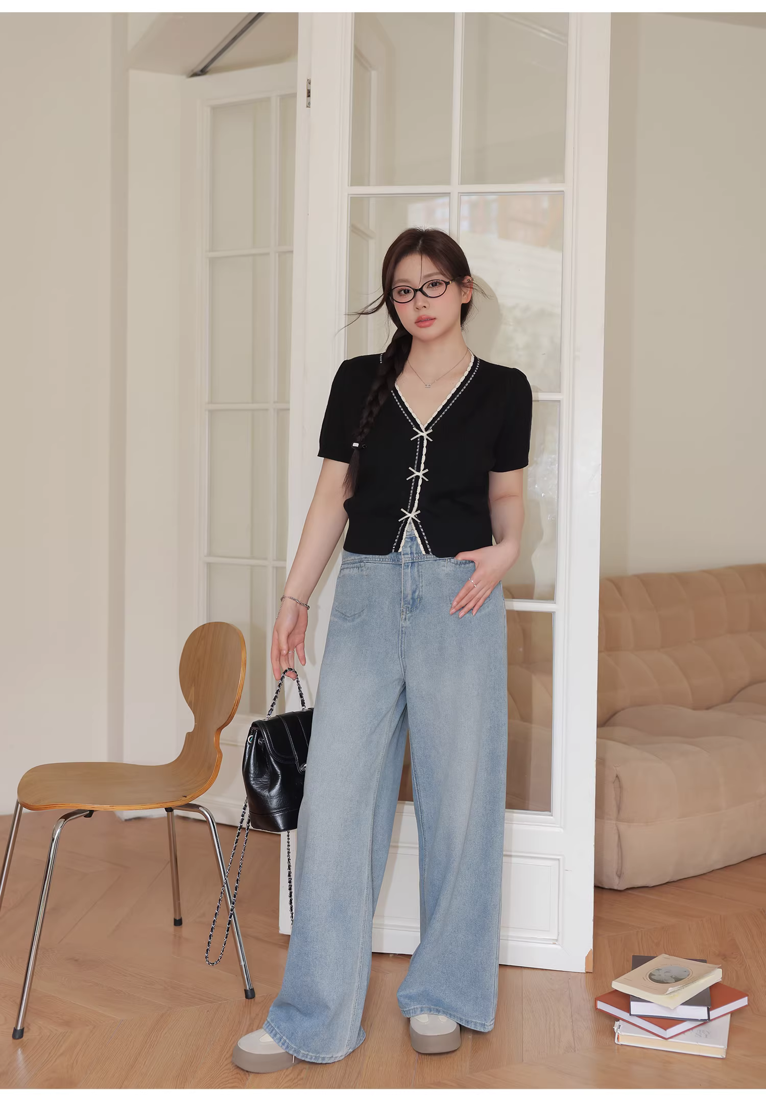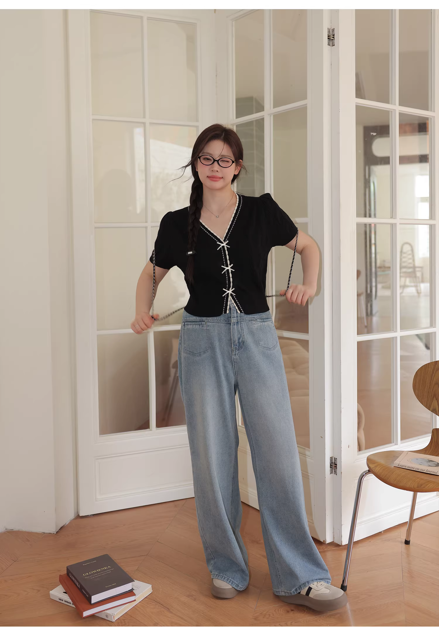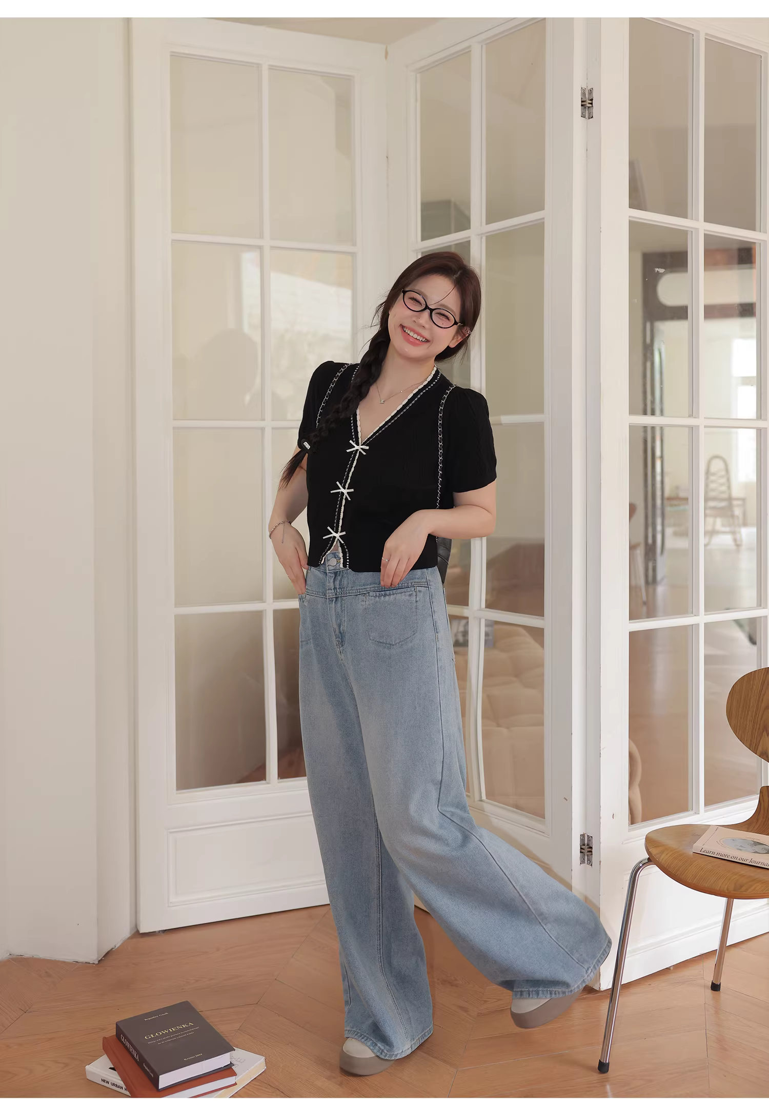 - Bộ đồ hai mảnh gồm áo thời trang trẻ trung dành cho nữ cỡ lớn và quần jeans ống rộng cạp cao tôn dáng