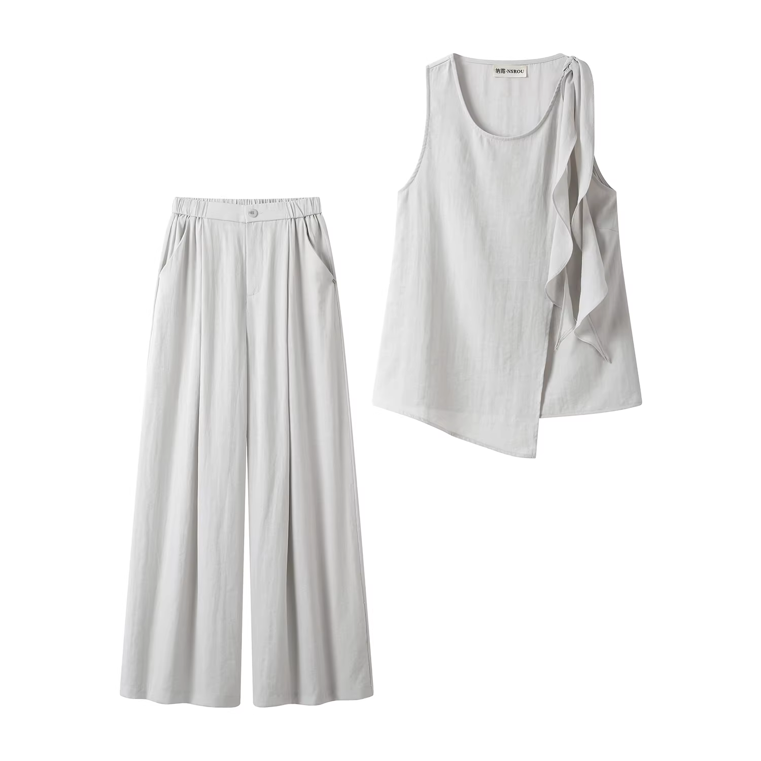 - Bộ đồ hai mảnh thời trang kiểu Pháp trẻ trung, áo không tay và quần ống rộng dáng thẳng dành cho nữ mùa hè