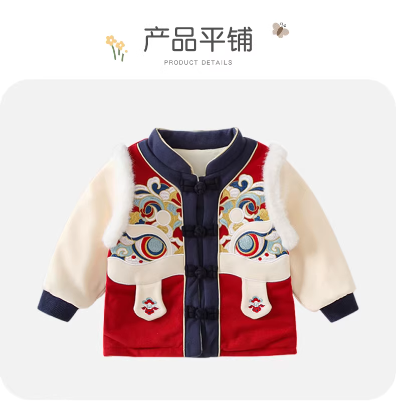 Bộ đồ Hanfu dành cho bé trai Fanhai Trang phục mùa đông Trang phục mùa đông dành cho trẻ em Phong cách truyền thống Trung Quốc Bộ đồ Tang Suit có lót lông cừu cho bé Váy lễ mừng năm mới cho bé một tuổi Trang phục năm mới
