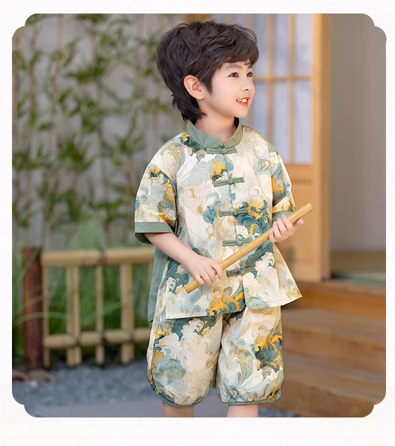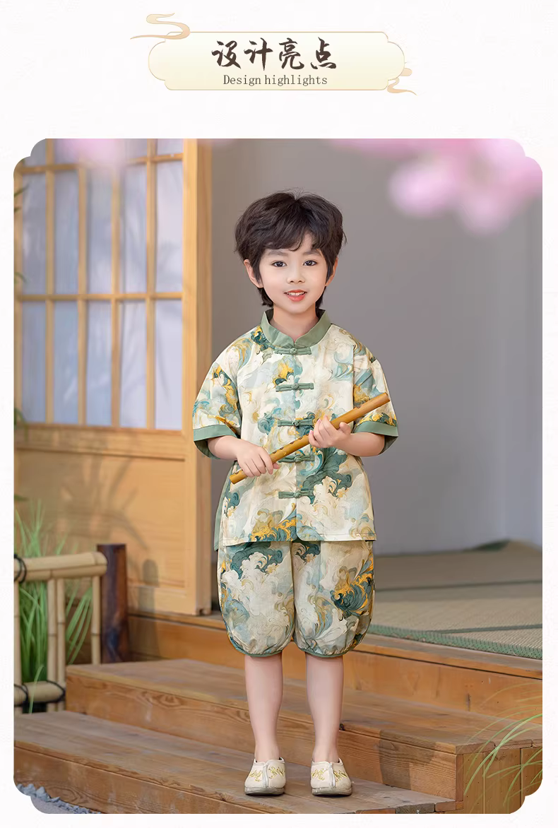 - Bộ đồ Hanfu kiểu Trung Quốc mới cho bé trai, bộ đồ mùa hè kiểu Đường, chất liệu mỏng, tay ngắn, kiểu Trung Quốc, mẫu mới 2025