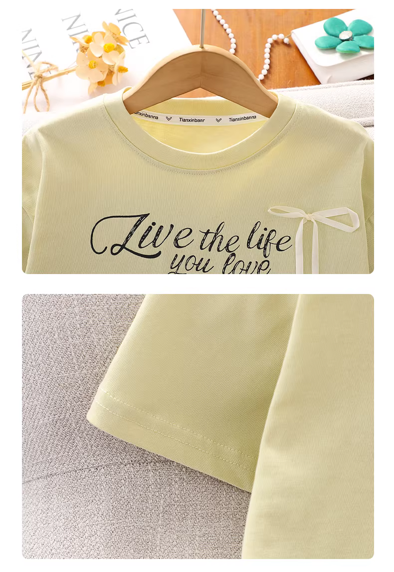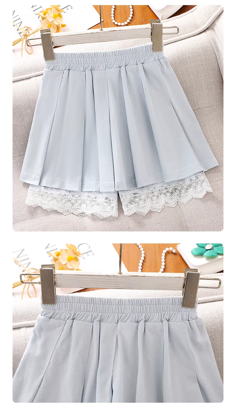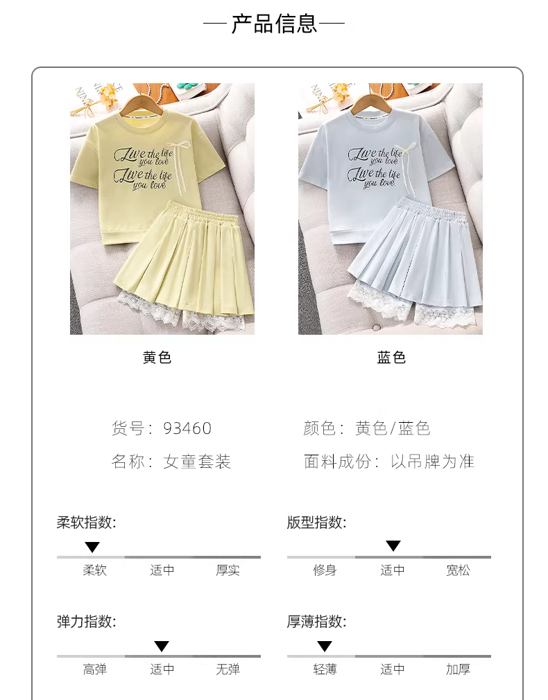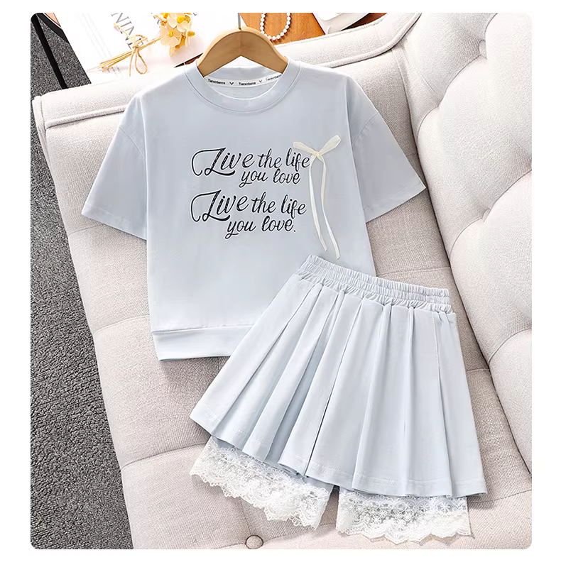 - Bộ đồ hè bé gái 2025 kiểu mới áo thun ngắn tay xếp ly chân váy trẻ em bộ hai mảnh mùa hè