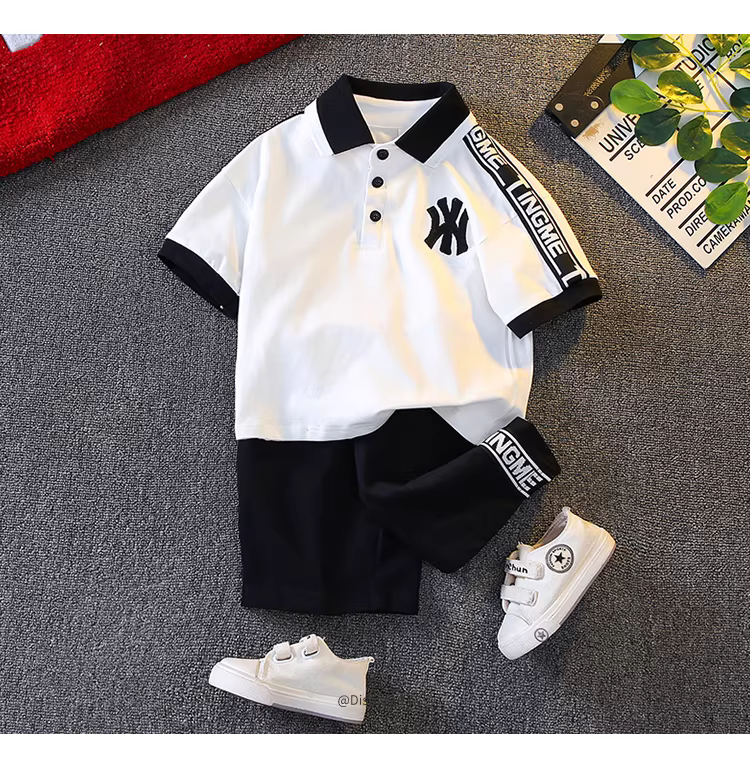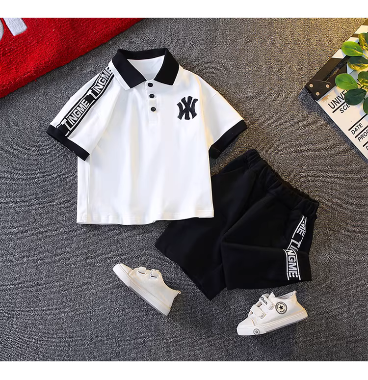 - Bộ đồ hè bé trai 2025, quần áo trẻ em mới, bộ hai mảnh áo ngắn quần đùi, quần áo hè bé trai nhỏ, thời trang trẻ em