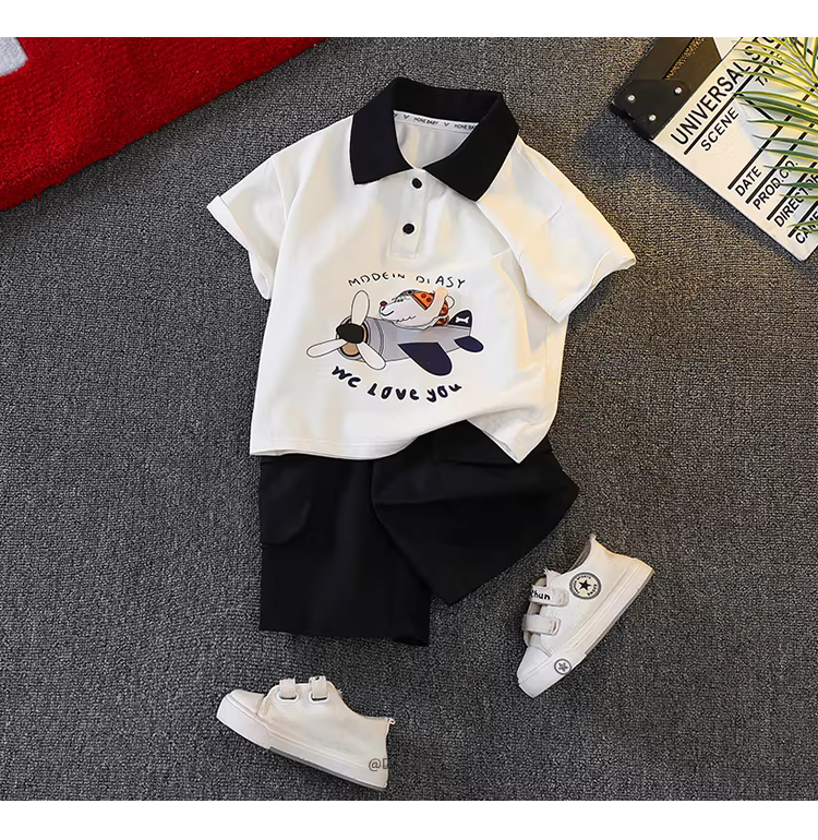 - Bộ đồ hè bé trai 2025, quần áo trẻ em mới, kiểu dáng hè ngắn tay, bé trai đẹp trai, bộ đồ polo hè cho bé