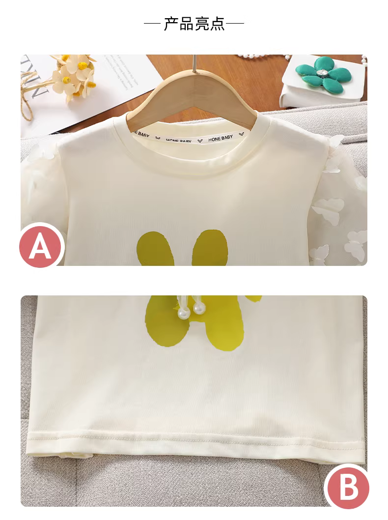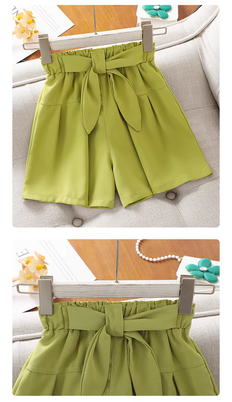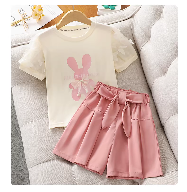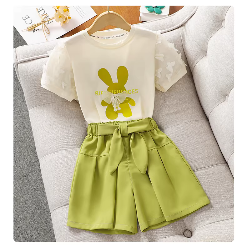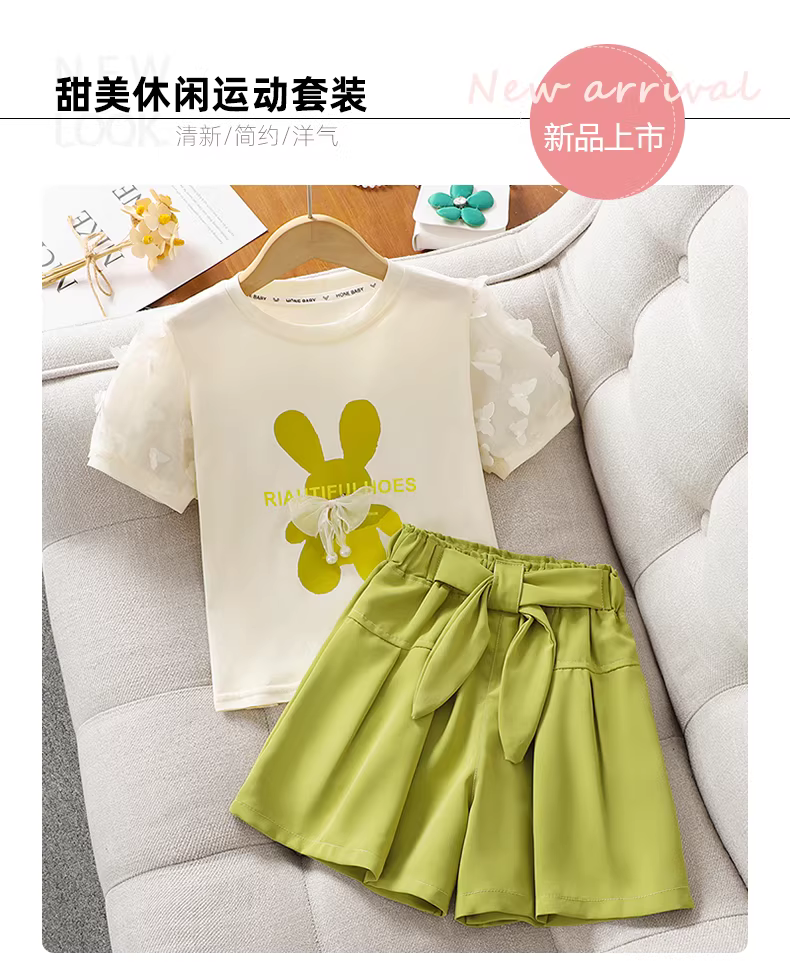 Bộ đồ hè hai mảnh kiểu mới 2025 dành cho bé gái, quần đùi ngắn tay, phong cách năng động, dành cho bé gái lớn hơn, thiết kế dễ thương.