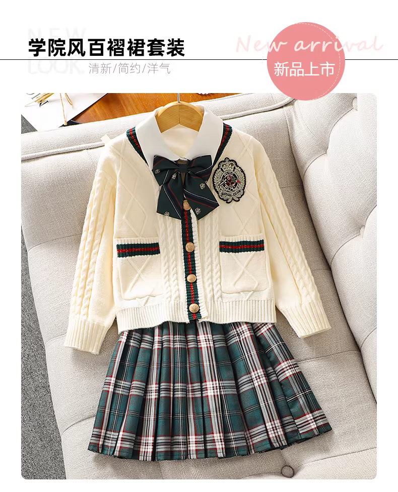 - Bộ đồ JK dành cho nữ sinh Bộ ba món thời trang phong cách mới mùa thu dành cho nữ, váy xếp ly phong cách preppy dành cho học sinh trung học cơ sở