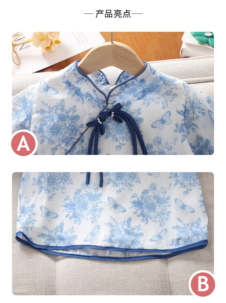 - Bộ đồ kiểu Trung Hoa dành cho bé gái mẫu mới 2025 dành cho trẻ lớn, quần áo mùa hè, kiểu áo Tang cổ điển, họa tiết men xanh trắng, phong cách Trung Hoa Dân Quốc, bộ hai mảnh
