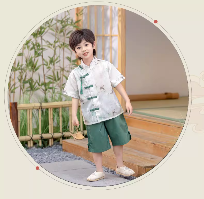 - Bộ đồ kiểu Trung Hoa mới cho bé trai mùa hè 2025, trang phục phong cách dân tộc mới cho trẻ em, quần áo ngắn tay mùa hè cho bé trai