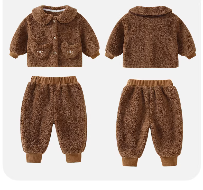 - Bộ đồ ngủ bé gái mùa đông 2025, bộ quần áo mặc nhà cho bé sơ sinh, áo và quần lót lông cừu hai mảnh, mùa thu đông