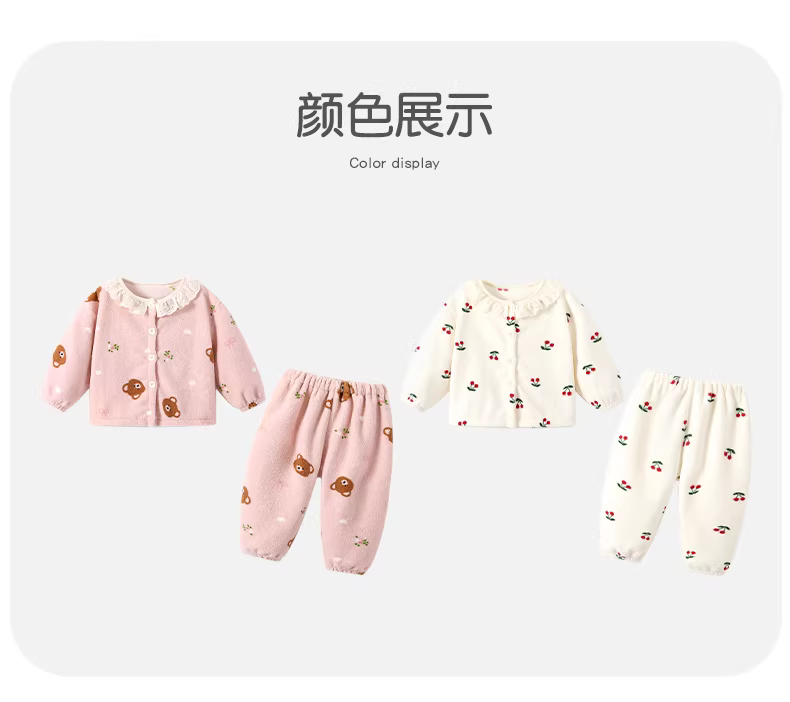 - Bộ đồ ngủ bé gái thu đông 2025, bộ đồ mặc nhà lông mềm mại cho bé, gồm áo và quần hai mảnh, mùa thu đông