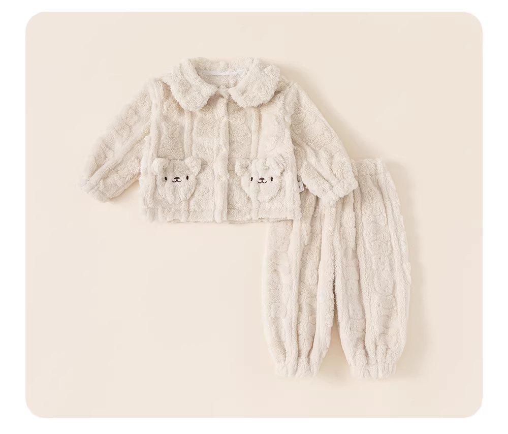 Bộ đồ ngủ trẻ em thu đông, bộ đồ ngủ bé gái, đồ mặc nhà bé trai, mẫu mới 2025, chất liệu lông cừu, giữ ấm