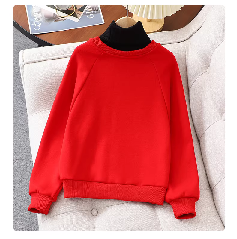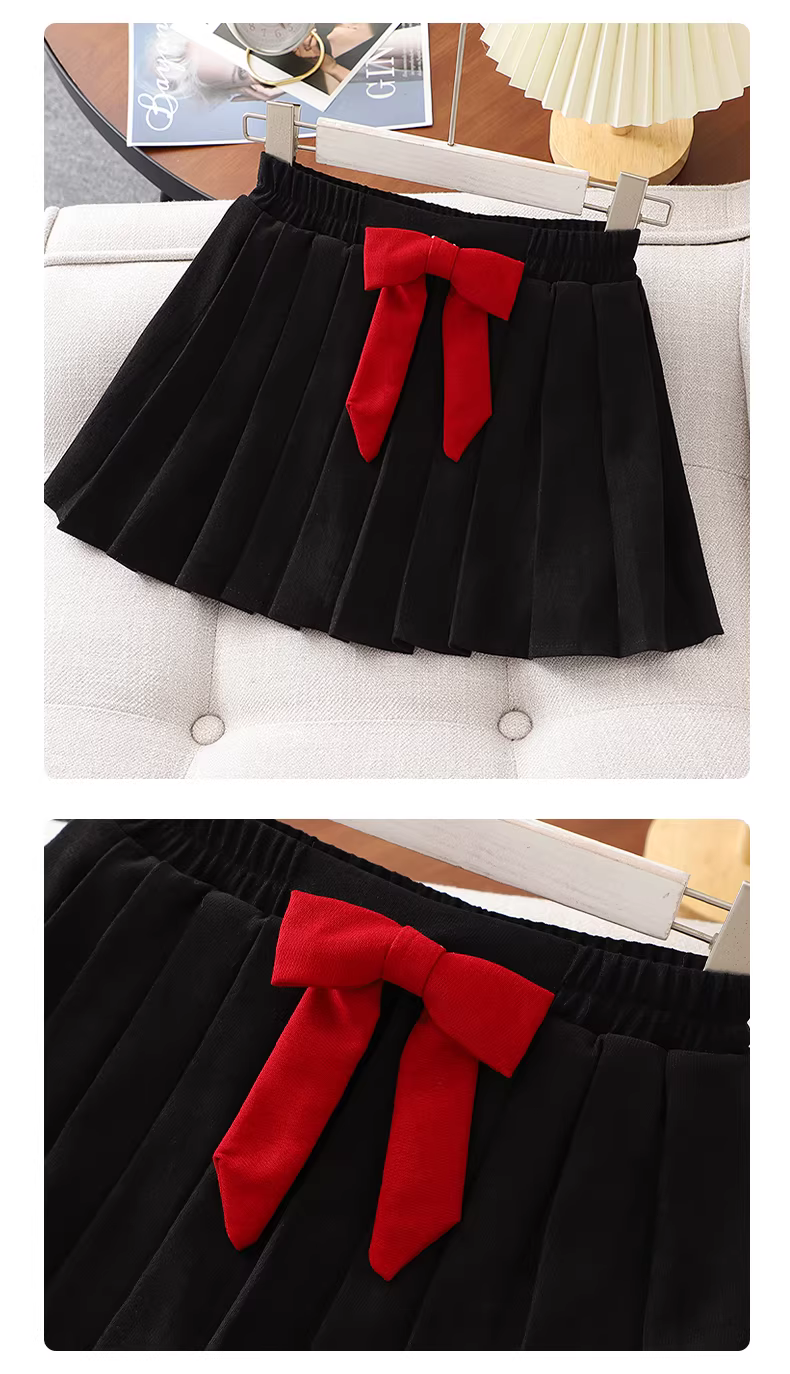 Bộ đồ nỉ bé gái thu đông 2025 kiểu dáng mới màu đỏ thời trang Tết, áo sweatshirt và chân váy hai mảnh size trung và lớn