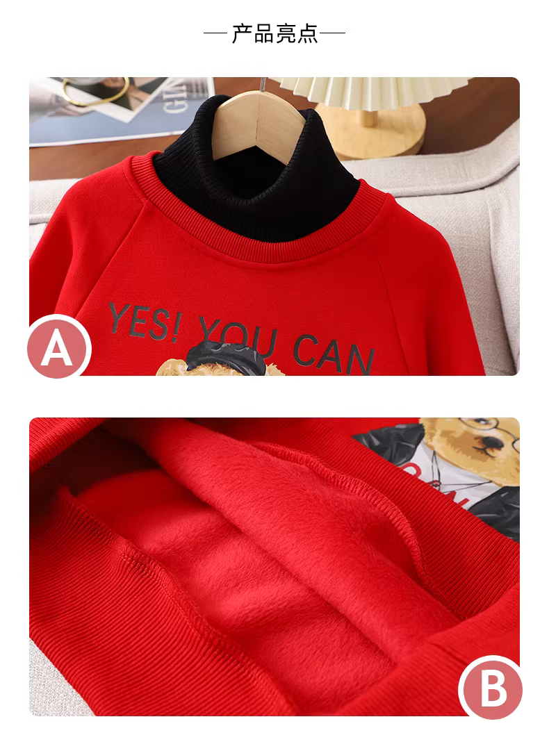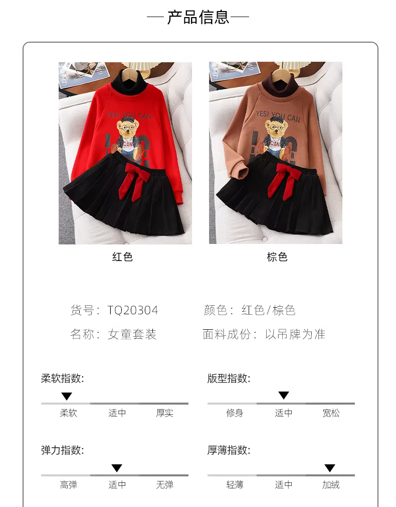 - Bộ đồ nỉ bé gái thu đông 2025 kiểu dáng mới màu đỏ thời trang Tết, áo sweatshirt và chân váy hai mảnh size trung và lớn