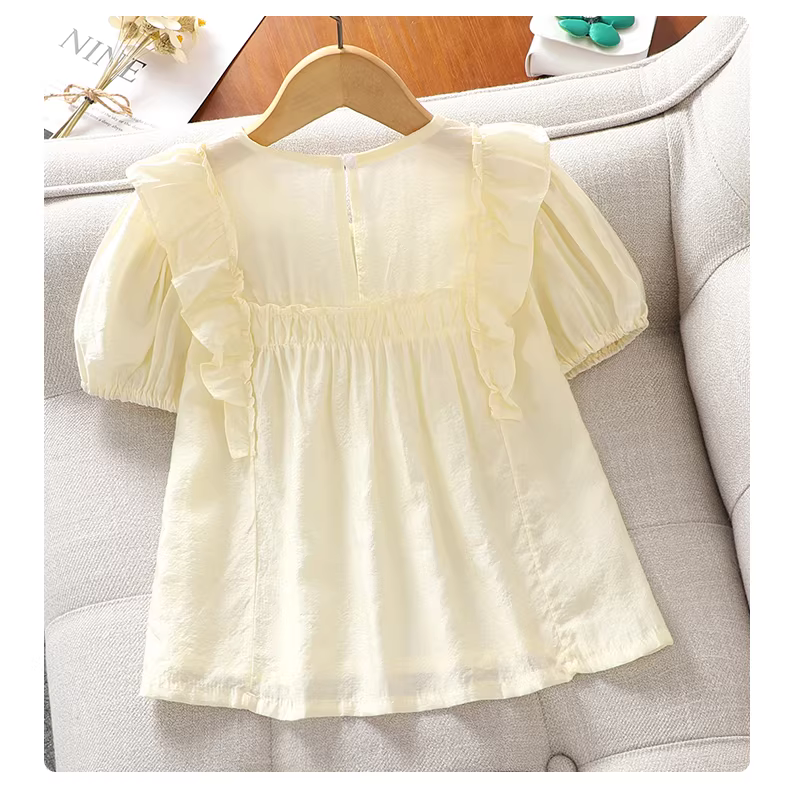 - Bộ đồ nữ bé gái tay ngắn mùa hè 2025, thời trang trẻ em mới, áo sơ mi tay ngắn phong cách Hàn Quốc, quần culottes, bộ hai mảnh, quần áo mùa hè