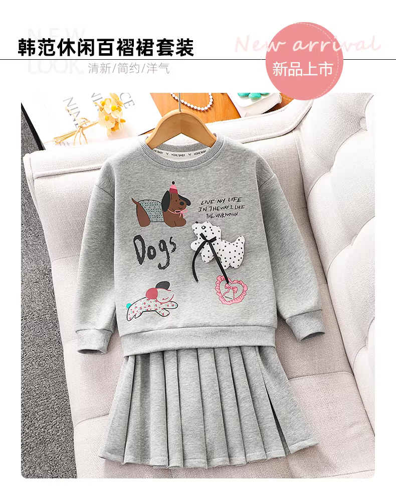 - Bộ đồ thể thao nữ, phong cách xuân thu, quần áo trẻ em, áo nỉ sành điệu, váy xếp ly, bộ hai mảnh, trang phục mùa xuân, váy thường ngày cho bé gái
