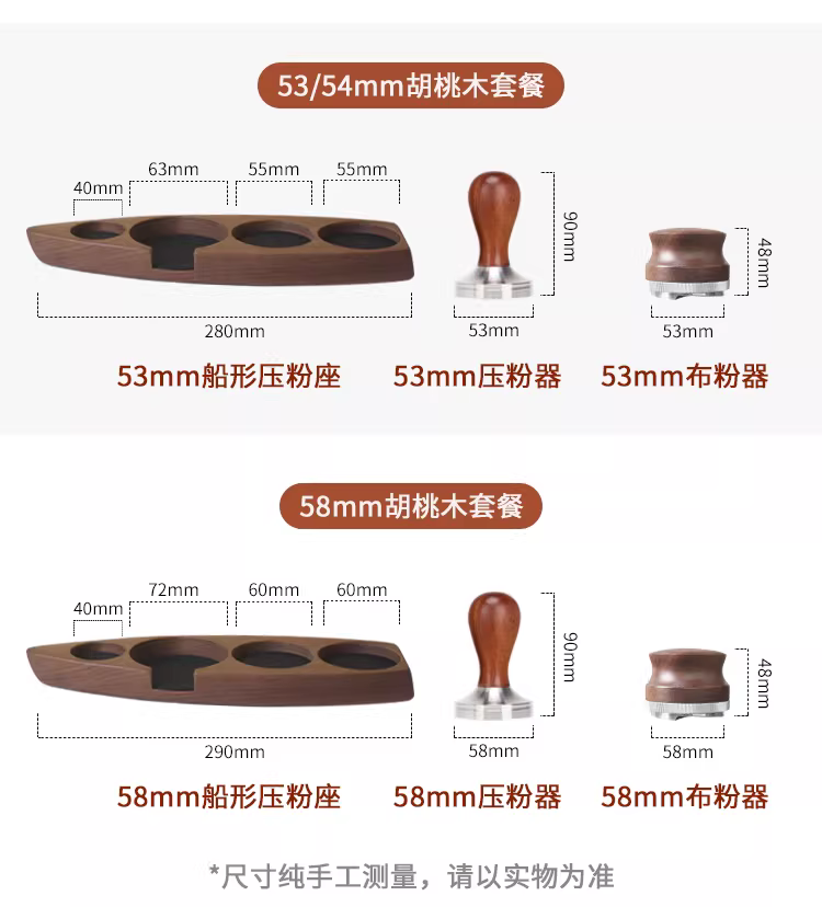 - Bộ dụng cụ đỡ tay cầm máy pha cà phê bằng gỗ nguyên khối hình thuyền, khung đỡ, đế đổ đầy, thiết bị hỗ trợ tamper