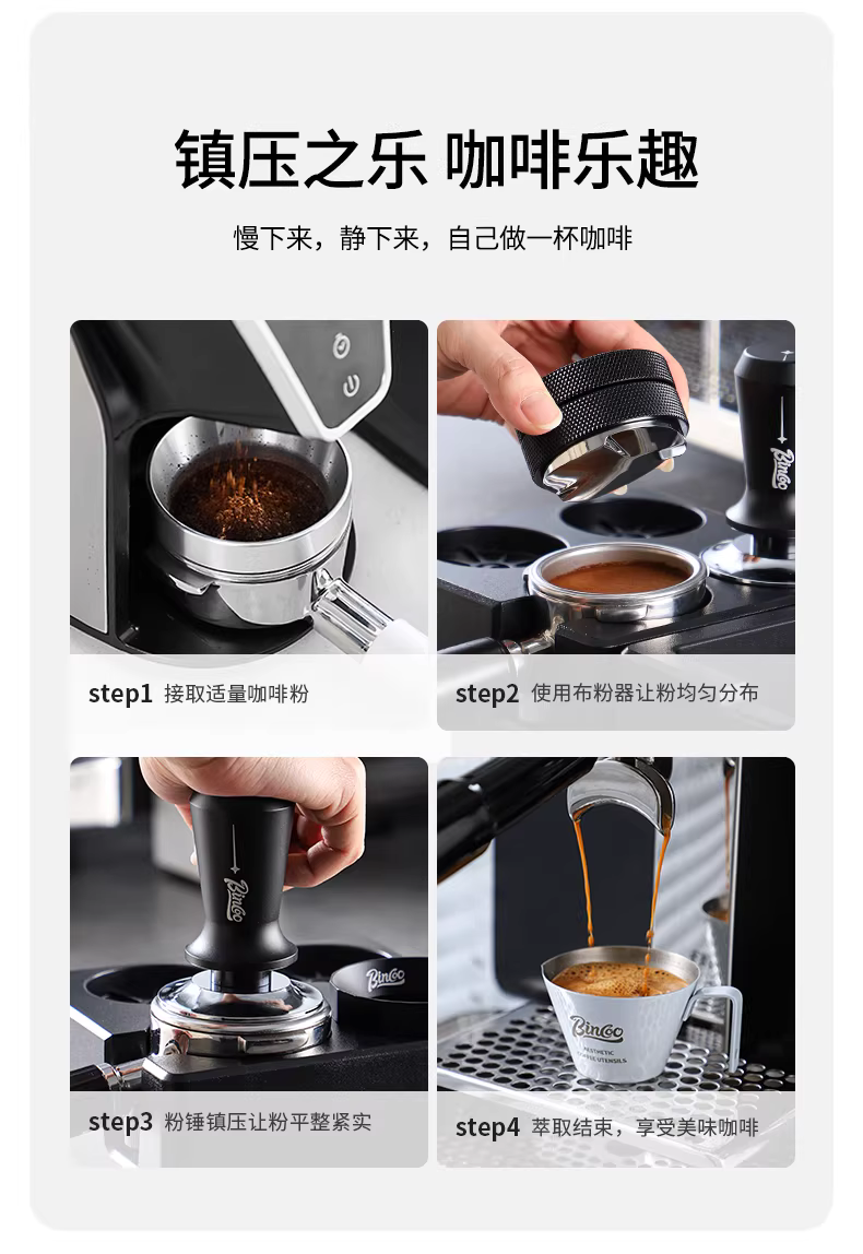 - Bộ dụng cụ ép cà phê Bincoo bằng thép không gỉ, kèm đế ép đàn hồi, thiết bị kiểu Ý, hộp đựng bã cà phê
