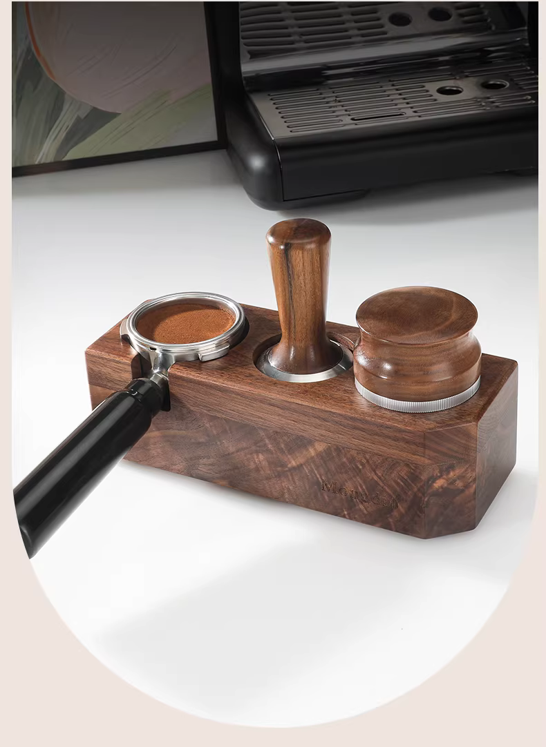 Bộ dụng cụ pha cà phê 3 món: đế tamper, tay cầm và giá để phụ kiện máy pha cà phê