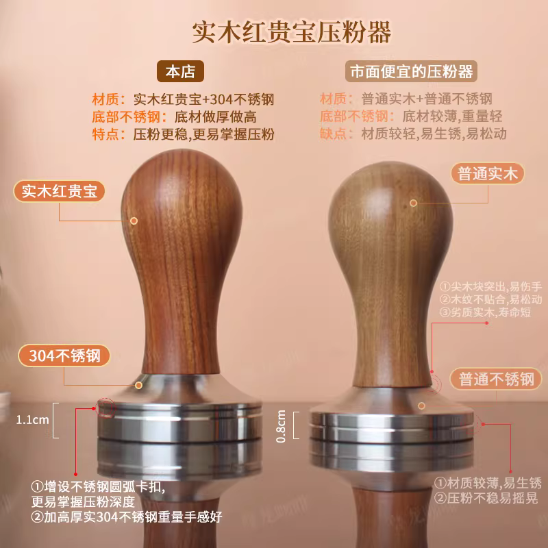 Bộ dụng cụ pha cà phê bằng thép không gỉ 51/53/58mm, tay cầm gỗ có ren, dụng cụ nén cà phê, bộ phân phối bột cà phê