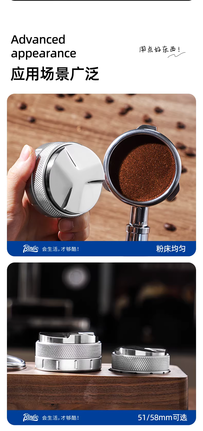 - Bộ dụng cụ pha cà phê Bincoo 51/58mm đa năng, bộ chổi quét bột ba chiều, tay cầm kiểu Ý, phụ kiện pha cà phê