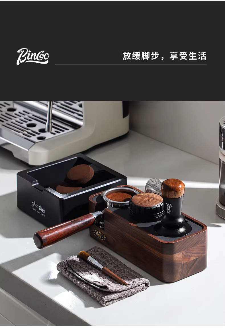 - Bộ dụng cụ pha cà phê Bincoo: đế tamper gỗ óc chó 51/58mm, dụng cụ phân phối cà phê, búa tamper
