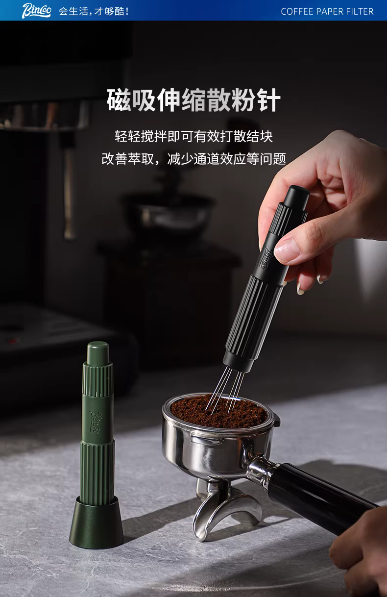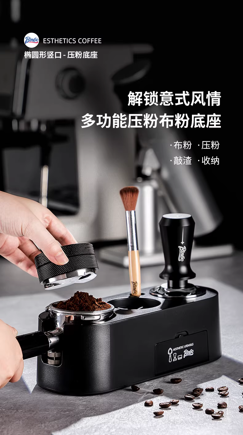 Bộ dụng cụ pha cà phê Bincoo gồm 3 món: dụng cụ phân phối bột, hộp đựng, dụng cụ máy pha cà phê, bộ đầy đủ với tay cầm và dụng cụ nén cà phê.