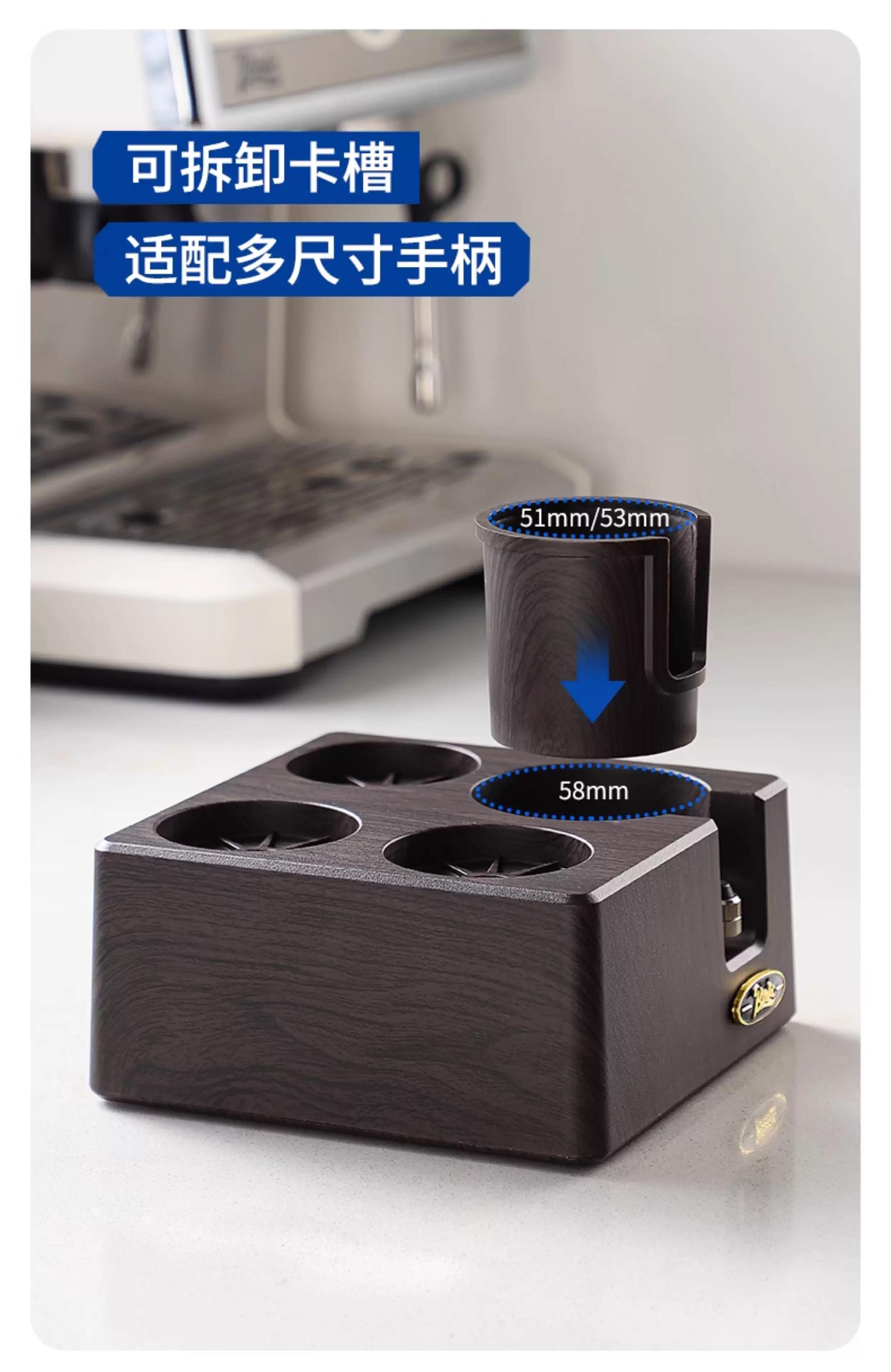 Bộ dụng cụ pha cà phê Bincoo gồm ba món: đế, dụng cụ nén cà phê và khăn phân phối cà phê hai trong một, máy pha cà phê lực không đổi 51/58mm
