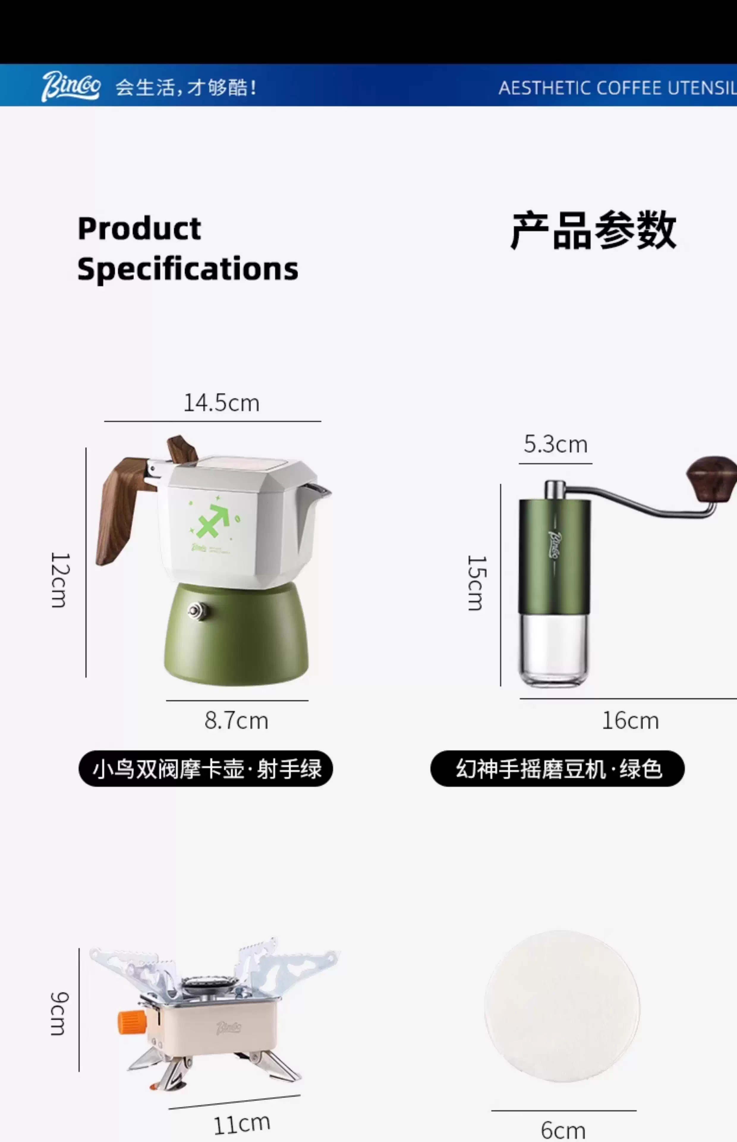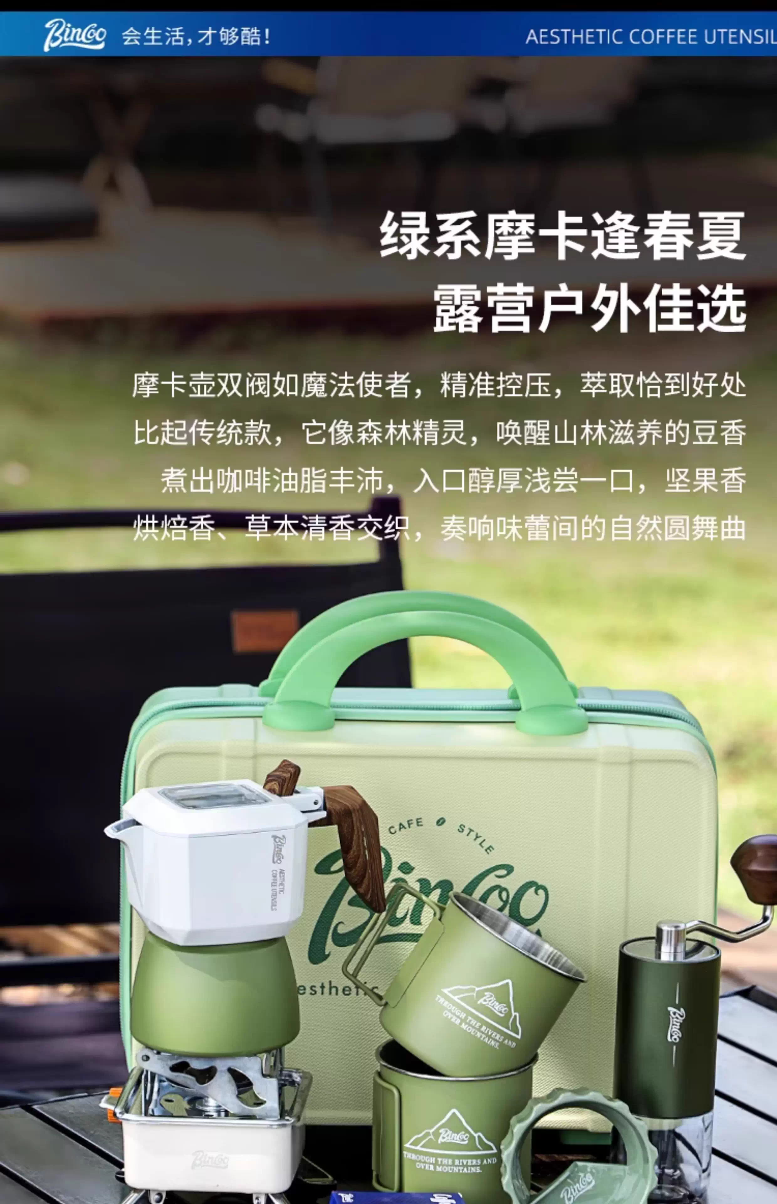 Bộ dụng cụ pha cà phê Bincoo Moka pot hai van, máy xay cà phê bằng tay, máy pha cà phê ngoài trời, thiết bị pha cà phê cắm trại, bộ dụng cụ bảo quản