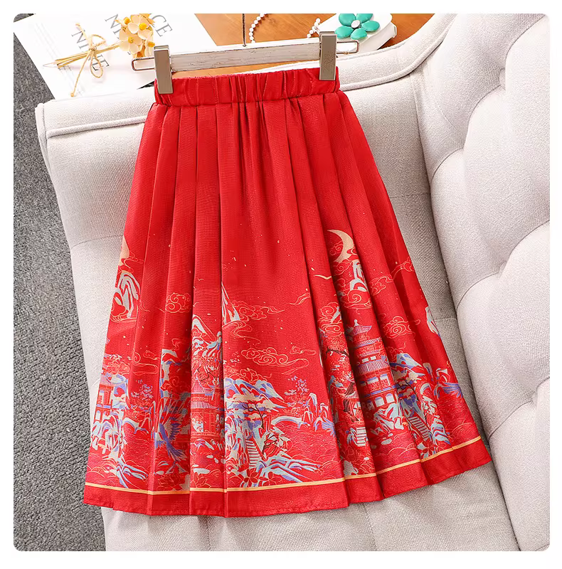 - Bộ Hanfu Xuân Thu 2025 cho bé gái, kiểu dáng dân tộc, váy mặt ngựa, trang phục Đường phục, váy hai mảnh cổ điển cho bé gái