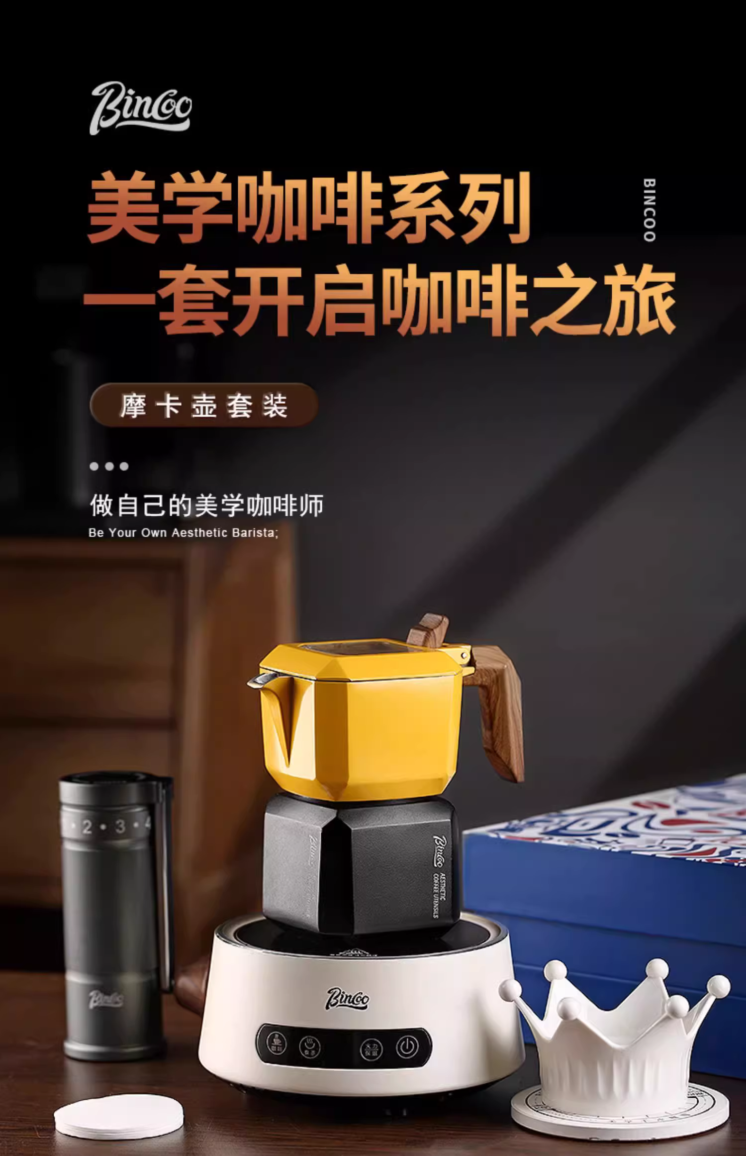 Bộ kết hợp bình pha cà phê moka van đôi Bincoo Hộp quà tặng năm mới Máy pha cà phê Ý quà tặng ngày lễ sinh nhật