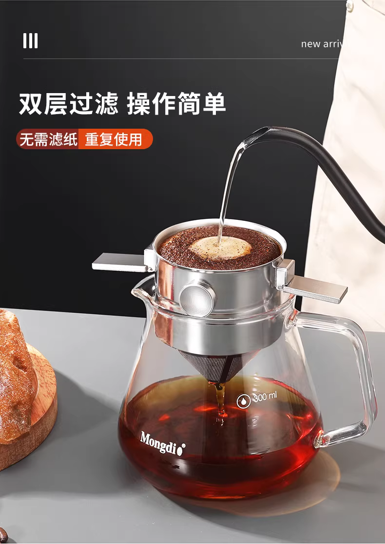 - Bộ lọc cà phê bằng thép không gỉ, cốc lọc di động, bộ lọc cà phê nhỏ giọt, giấy lọc cà phê, phễu lọc bằng thép không gỉ 304, không cần giấy lọc
